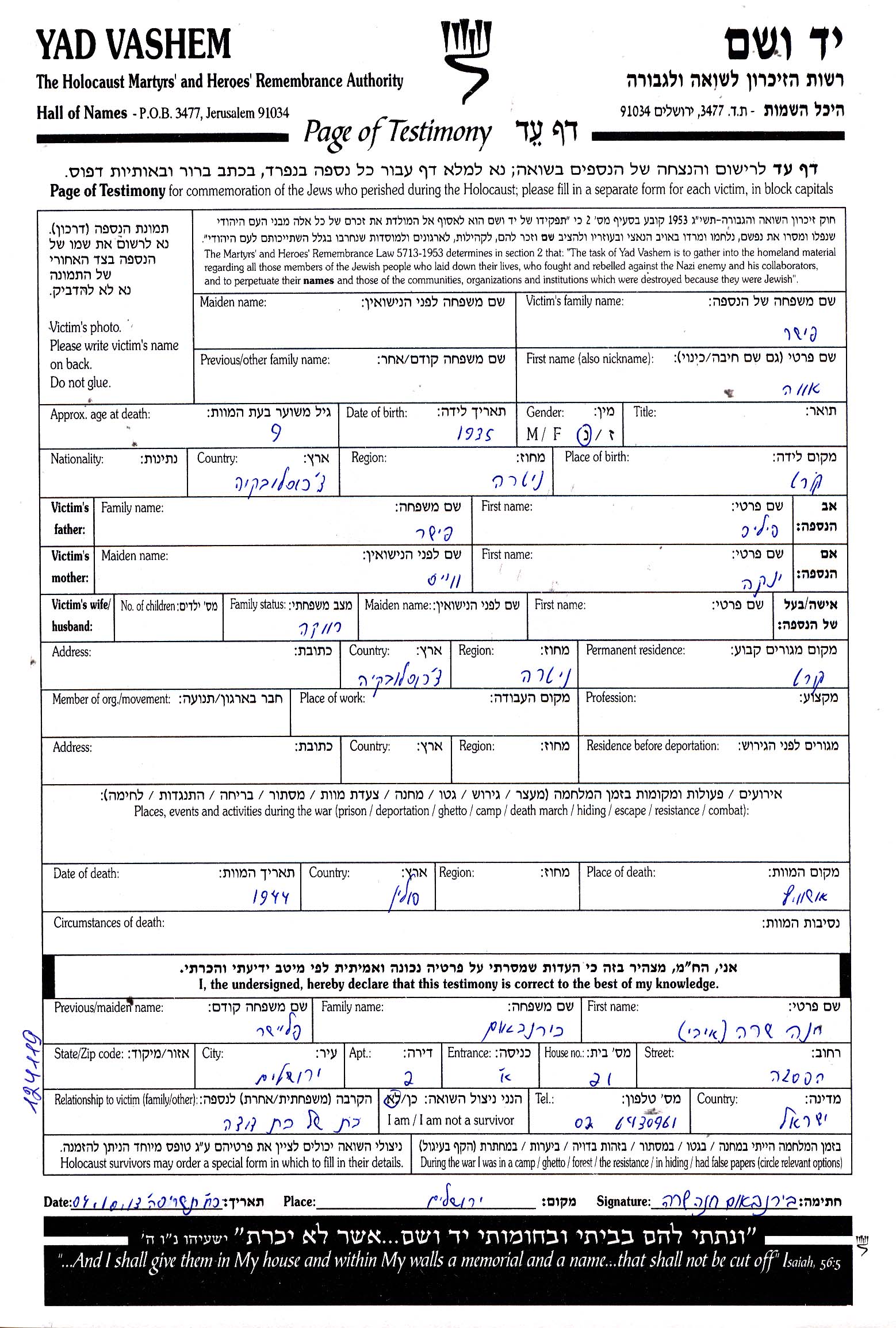 | Fischer | Eva | 1935 | Kurt, Checoslovaquia | Hoja de Testimonio |