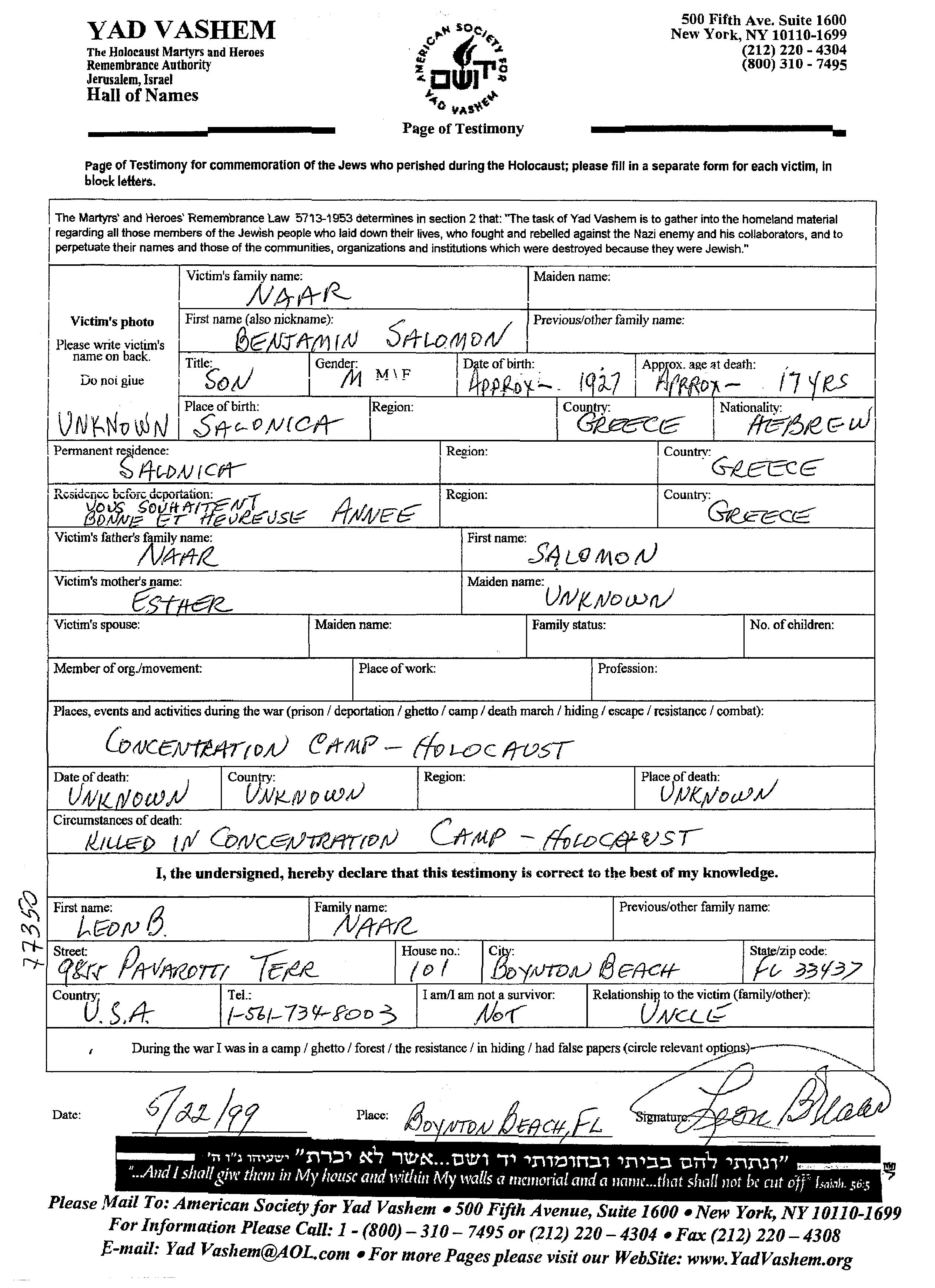 Durante la Guerra/Shoá: