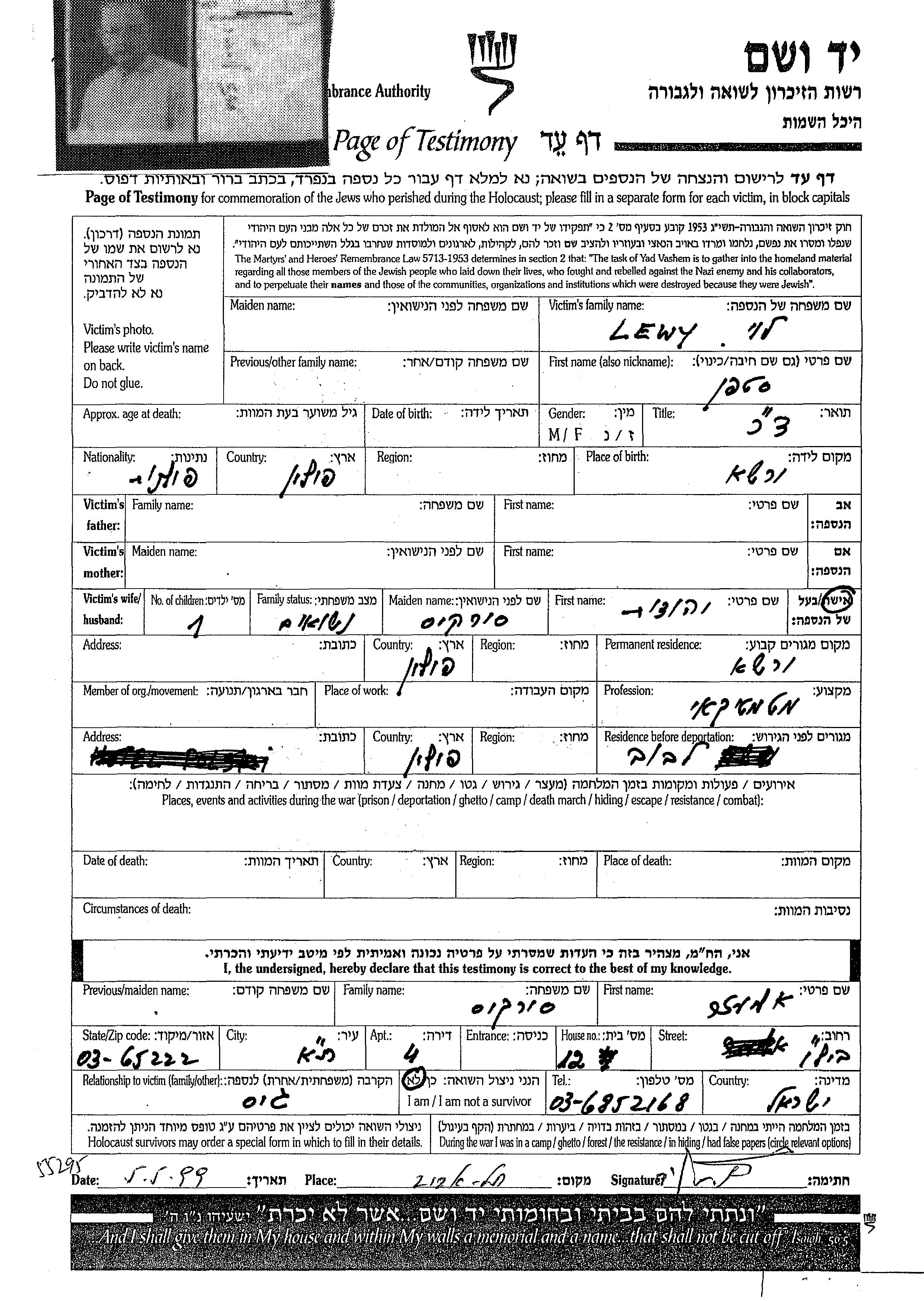 Yad Vashem - Colección conmemorativa de Hojas de Testimonio