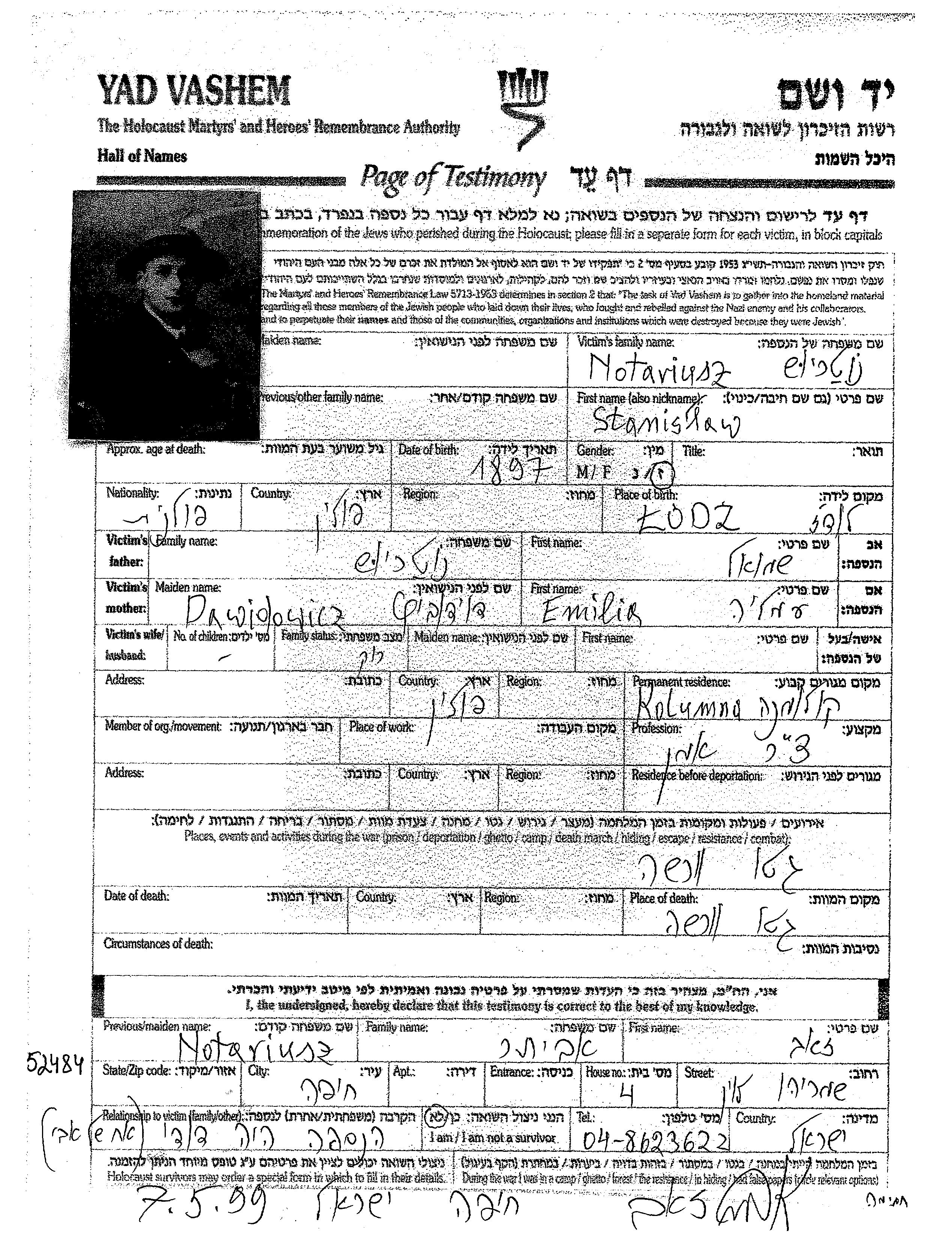 Notariusz | Stanislaw | 1897 | Kolumna, Polonia | Hoja de Testimonio |
