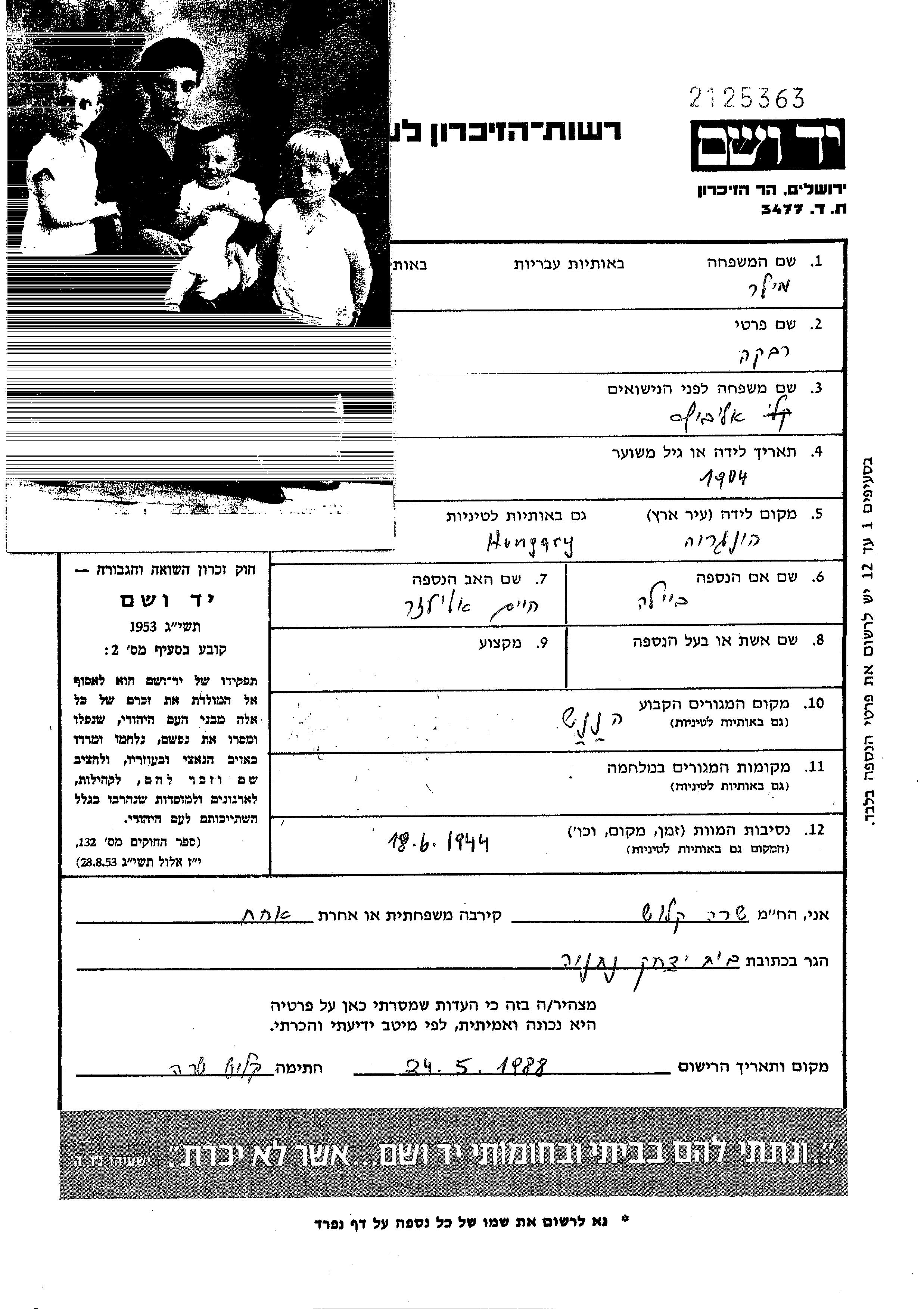 Yad Vashem - Colección conmemorativa de Hojas de Testimonio