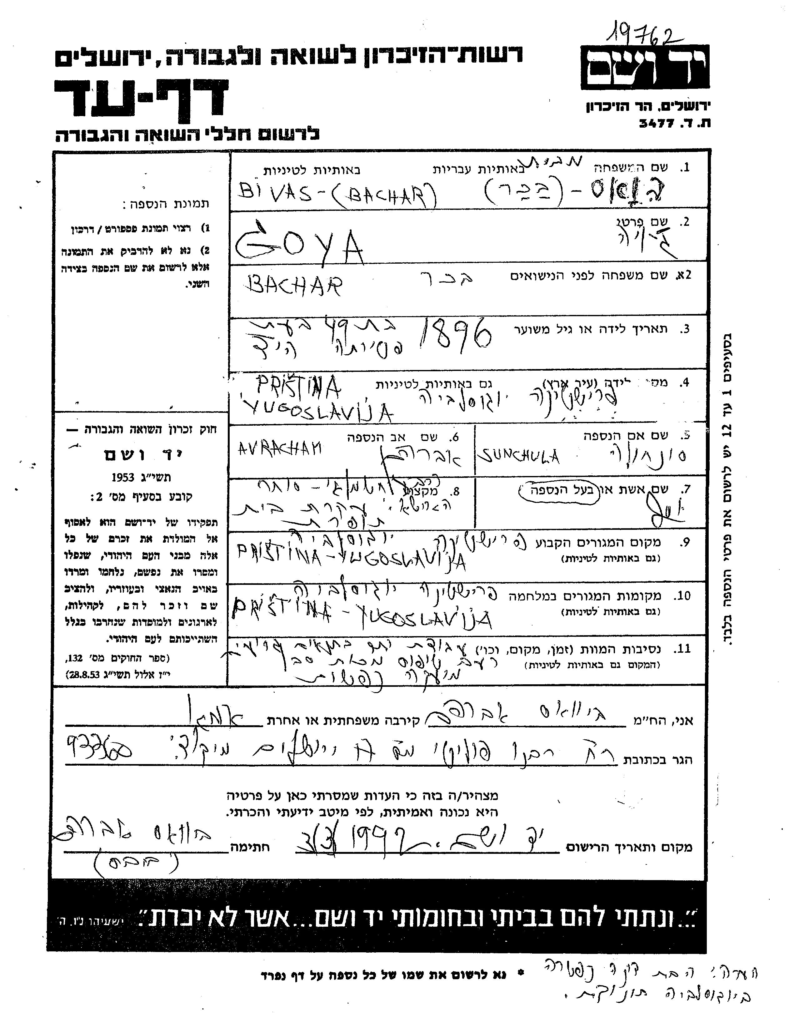 Joya Bivas apellido de soltera Bachar Bekher nació en Pristina, Yugoslavia en 1896. Era Costurera. Antes de la segunda guerra mundial vivía en Pristina, Yugoslavia.