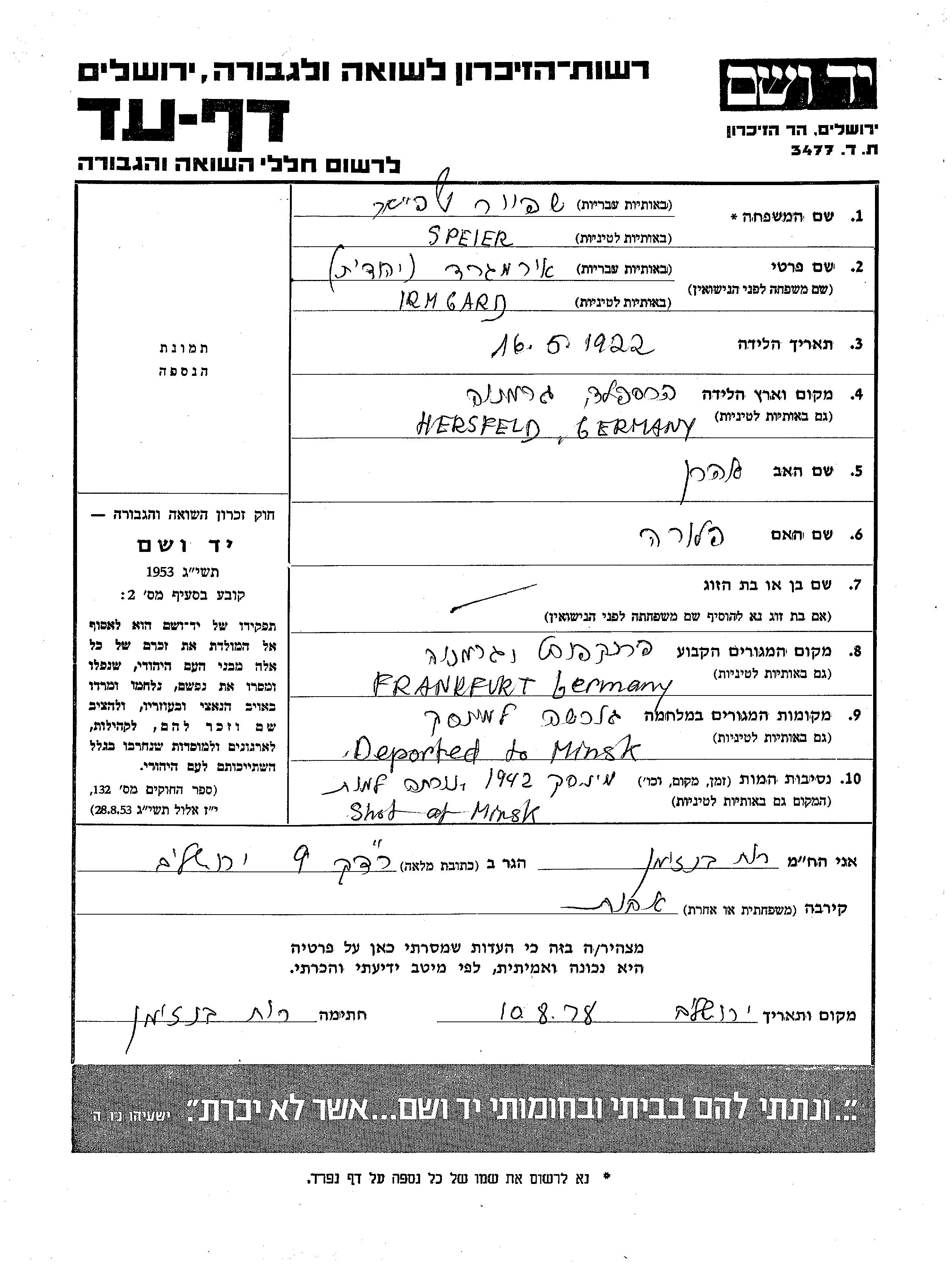 Durante la Guerra/Shoá: