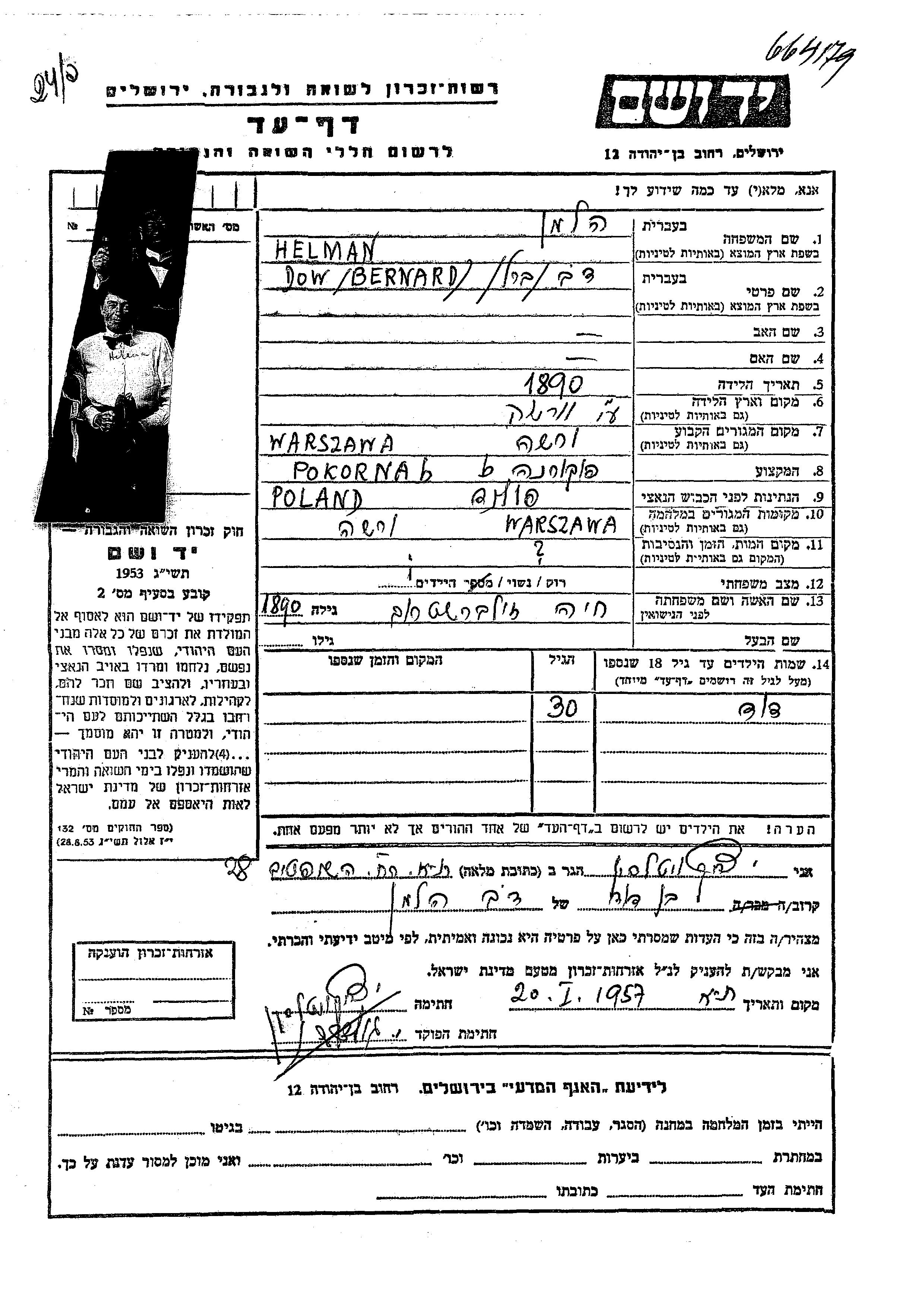 David Helman. Antes de la segunda guerra mundial vivía en Warszawa, Polonia.