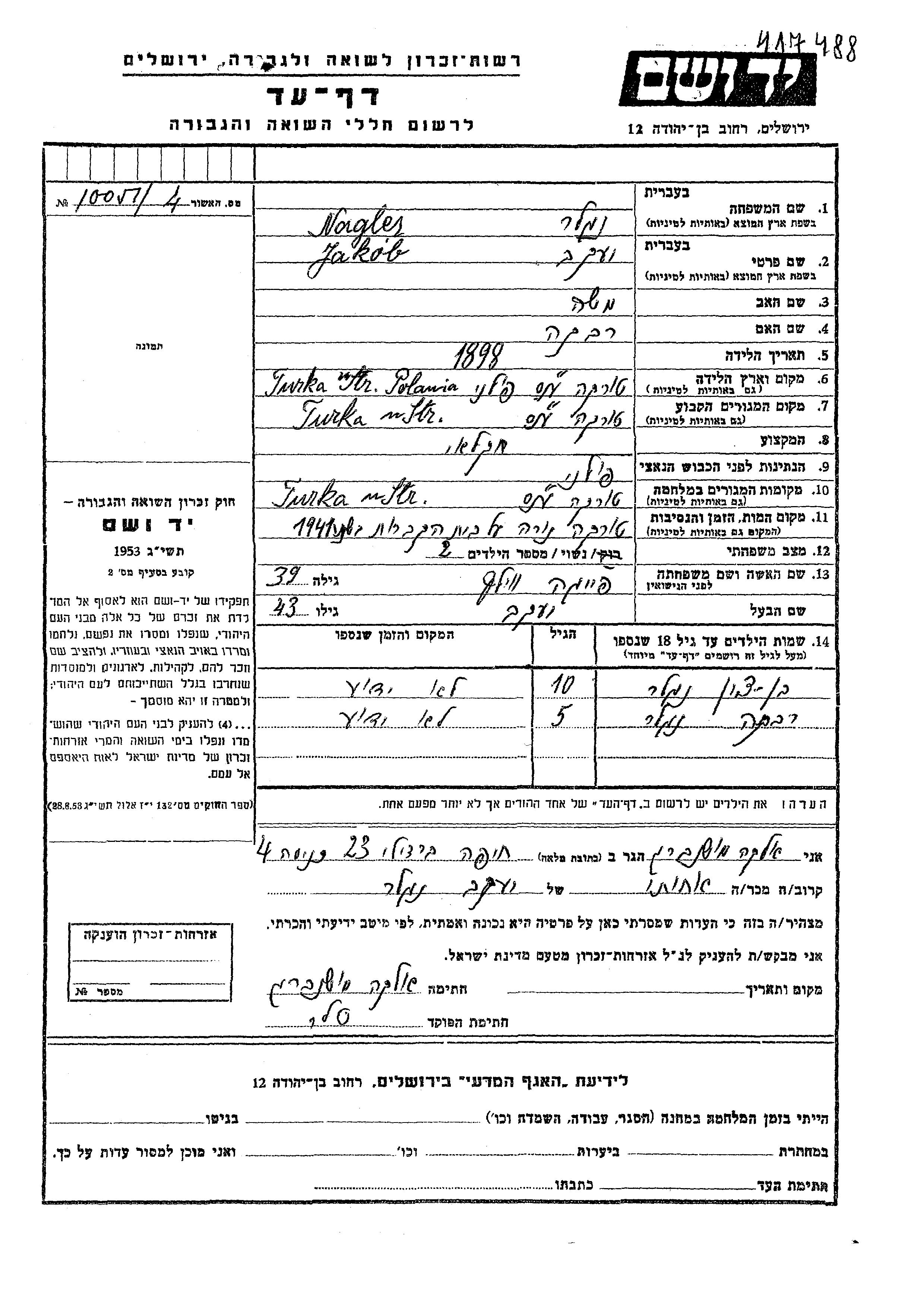 Yad Vashem - Colección conmemorativa de Hojas de Testimonio