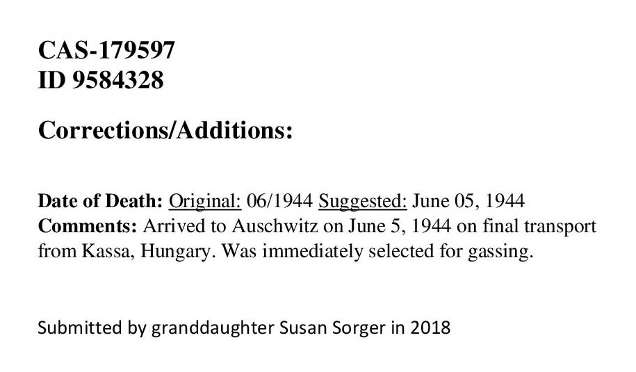 Grossmann Rella 1889 Kosice, Checoslovaquia Hoja de Testimonio (digital)