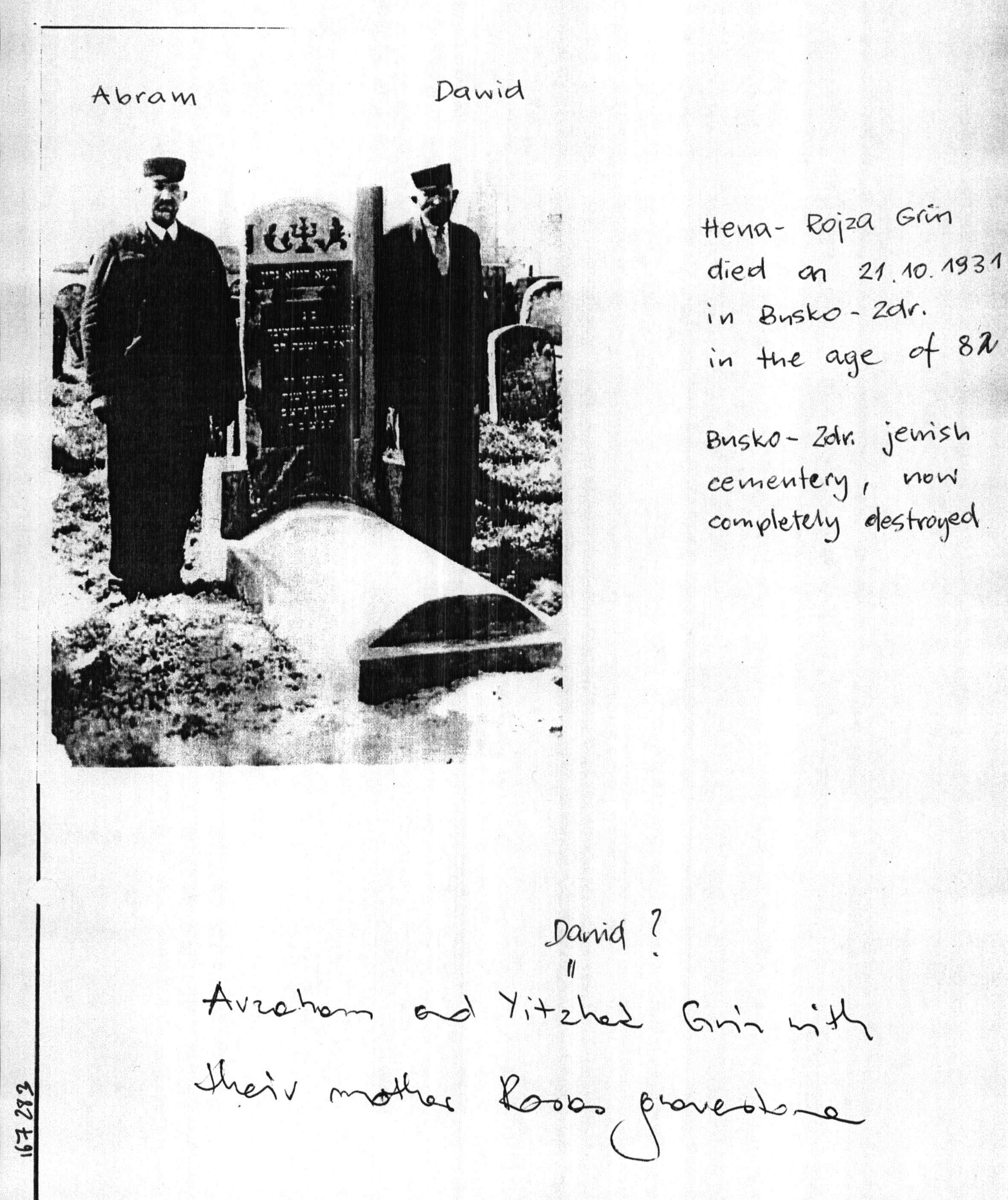 Abram Grin nació en Nowy Korczyn, Polonia en 1891. Era Negociante. Antes de la segunda guerra mundial vivía en Siesławice, Polonia.