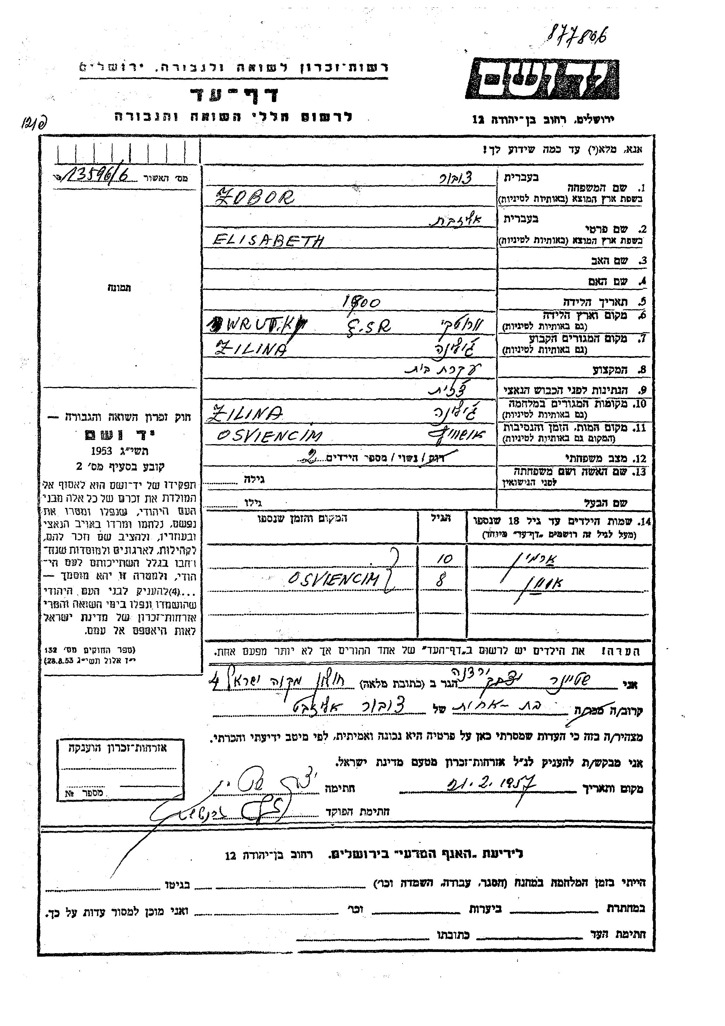 Yad Vashem - Colección conmemorativa de Hojas de Testimonio