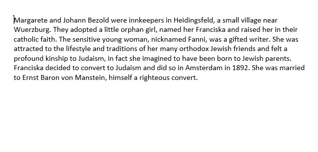 Franciska Von Manstein apellido de soltera Bezold nació en Undeciphered Place, Alemania en 1850. Antes de la segunda guerra mundial vivía en Wuerzburg, Alemania.