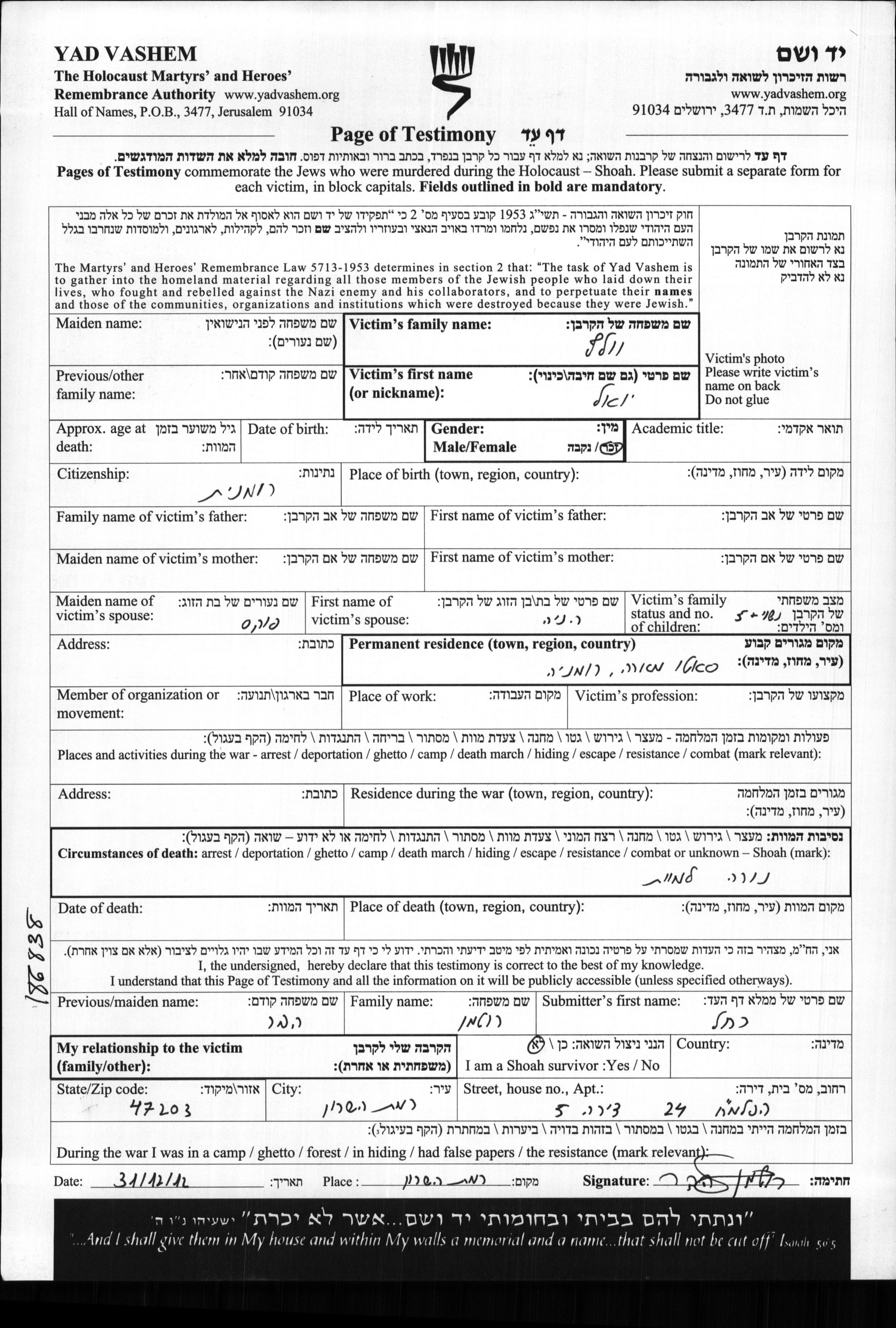 Durante la Guerra/Shoá: