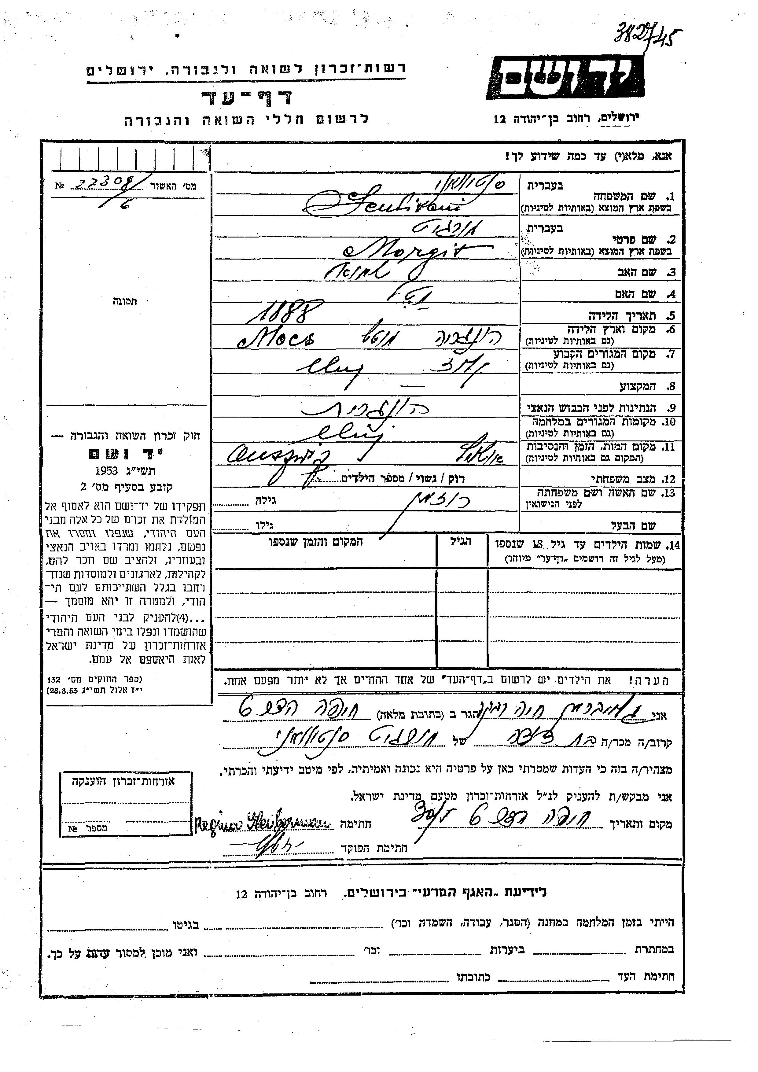Yad Vashem - Colección conmemorativa de Hojas de Testimonio