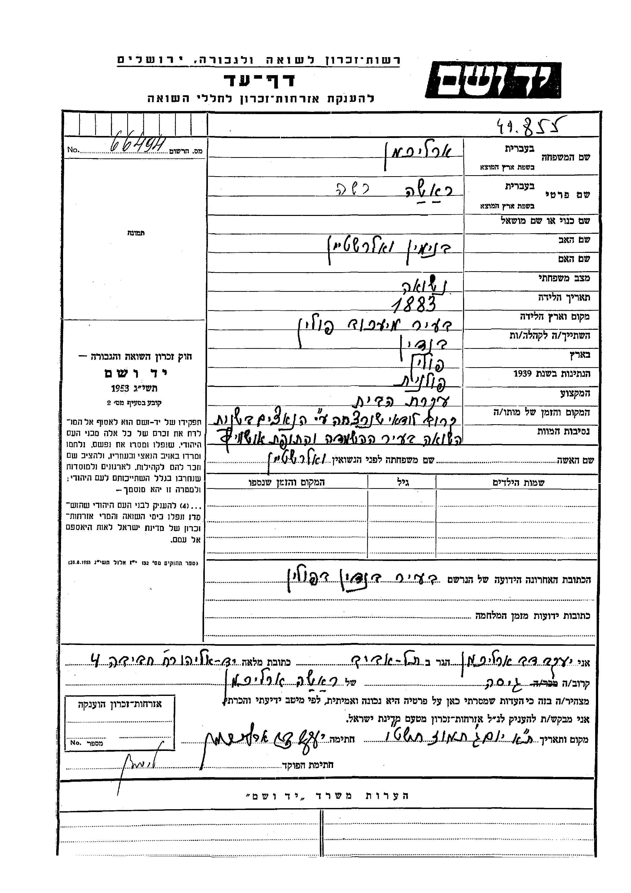 Yad Vashem - Colección conmemorativa de Hojas de Testimonio