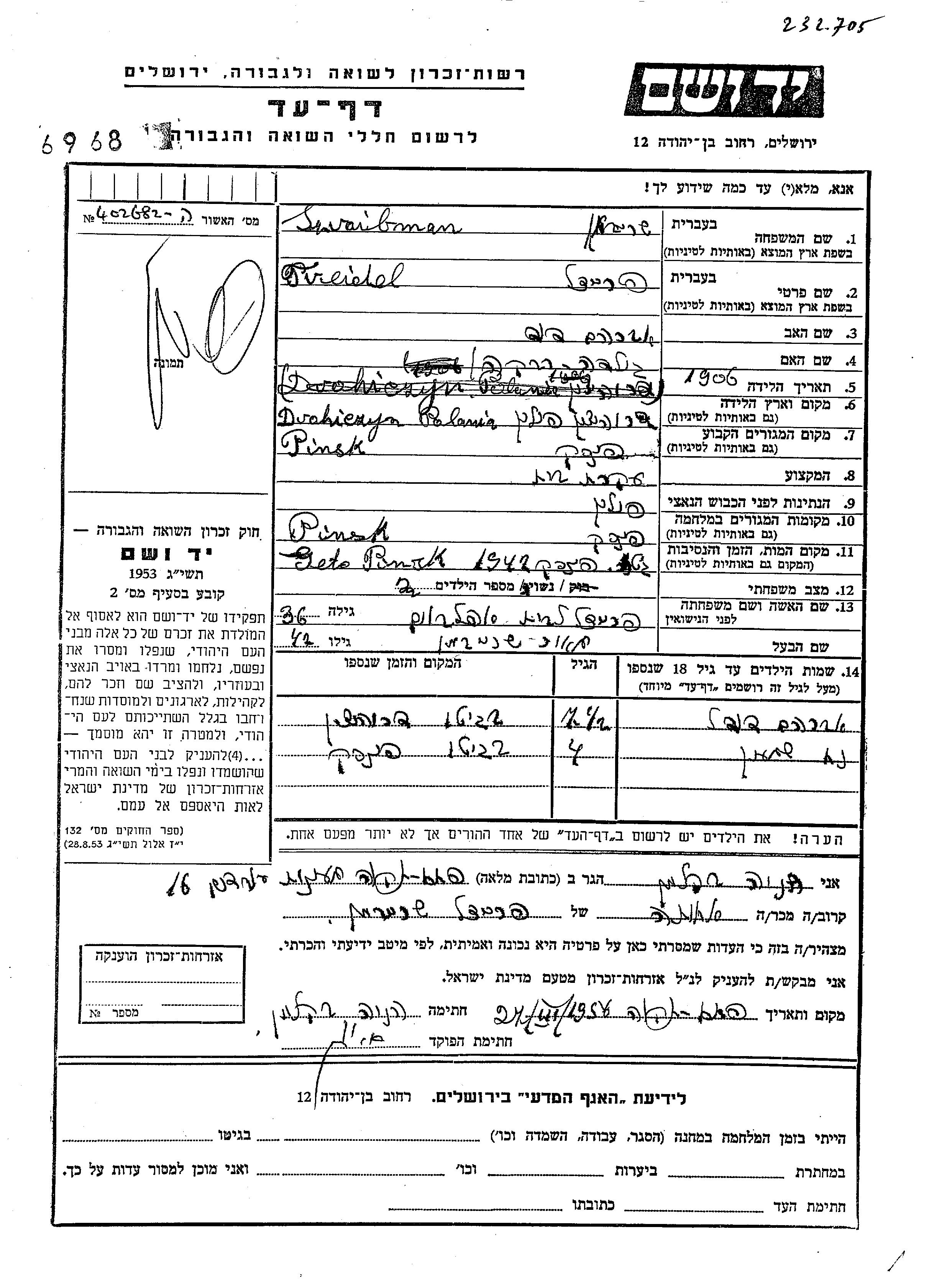 Yad Vashem - Colección conmemorativa de Hojas de Testimonio