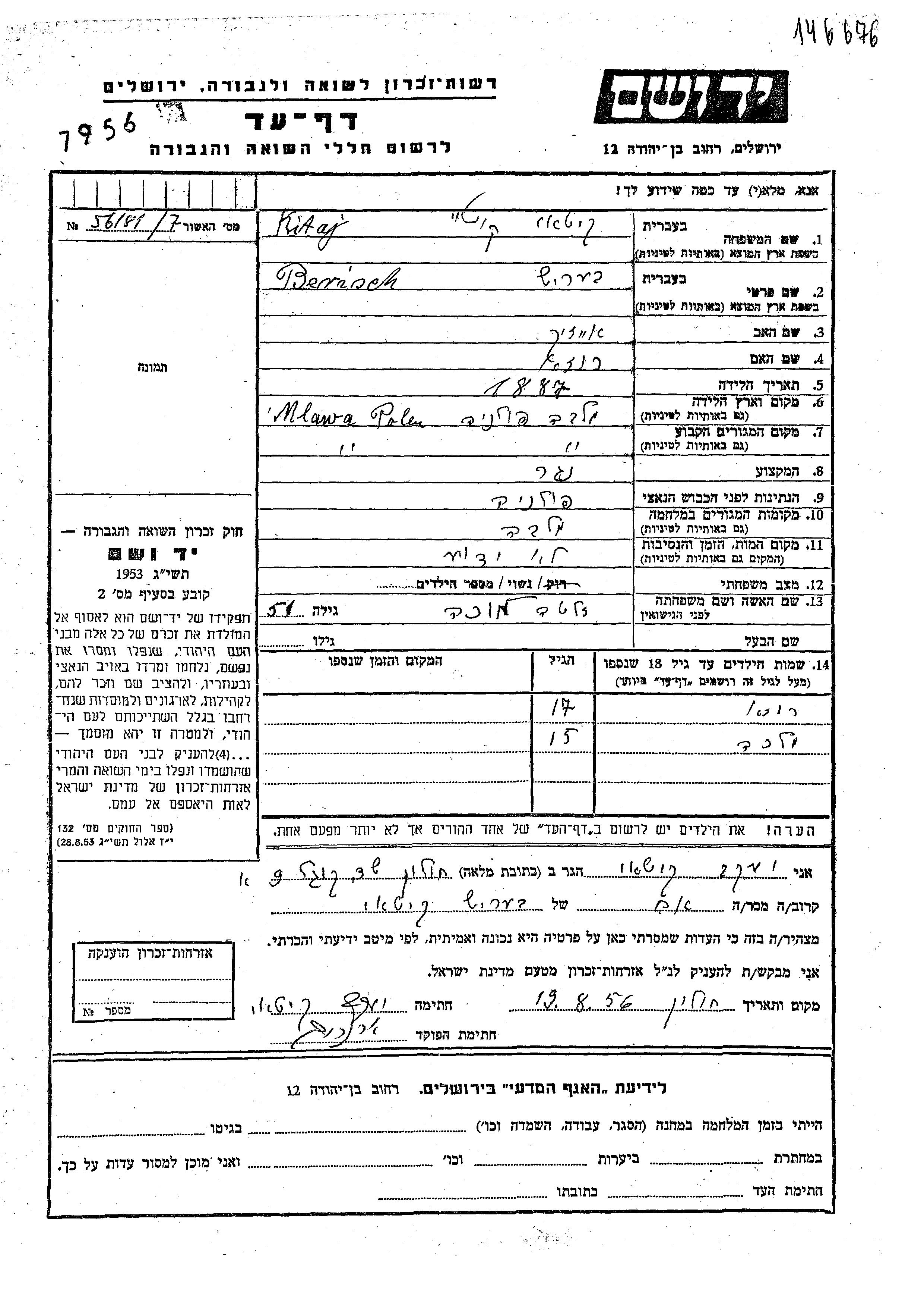 Kitaj Roza 1917 Mlawa, Polonia Hoja de Testimonio