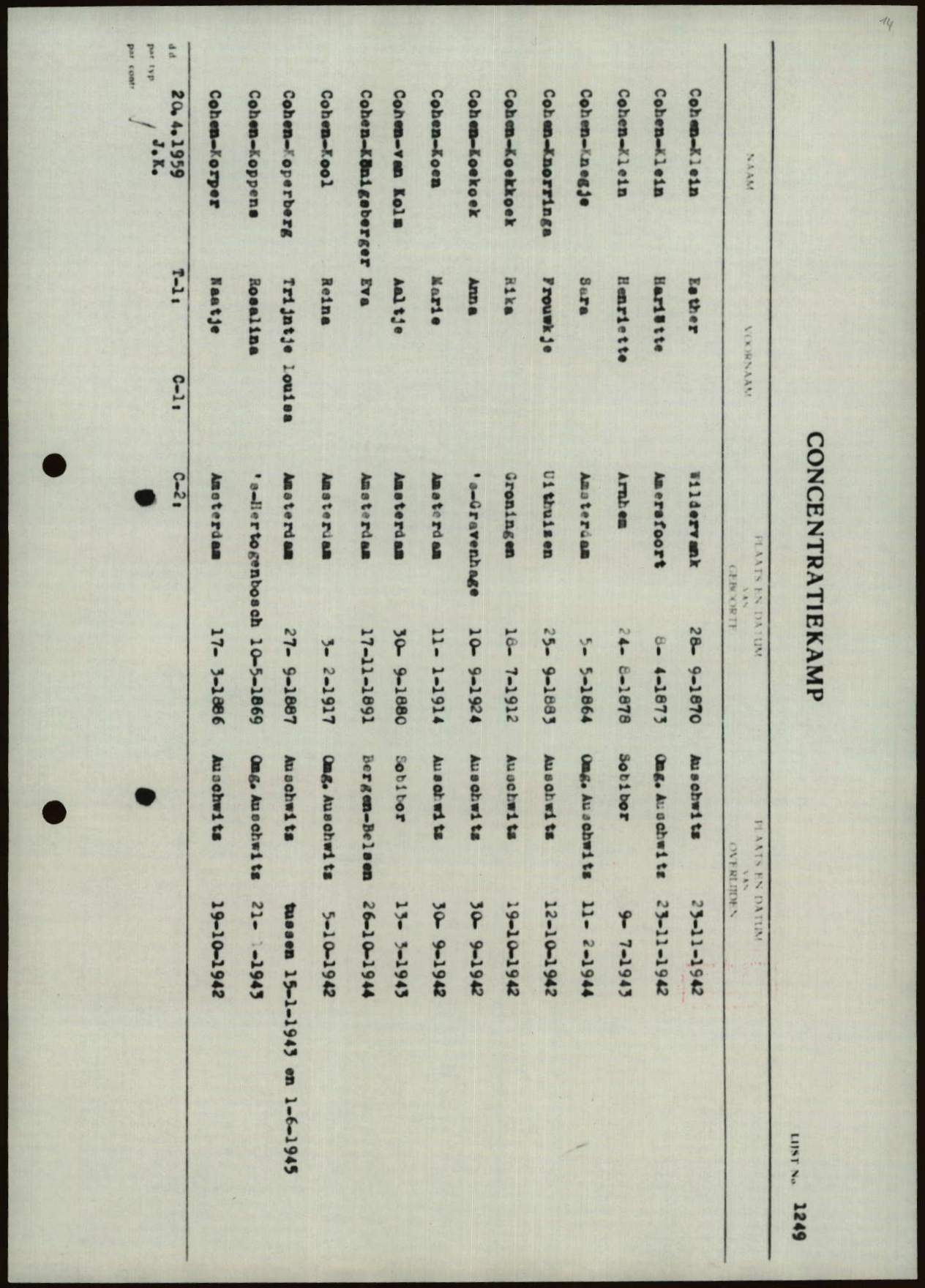 | Cohen | Esther | 1870 | Veendam, Holanda | Hoja de Testimonio |