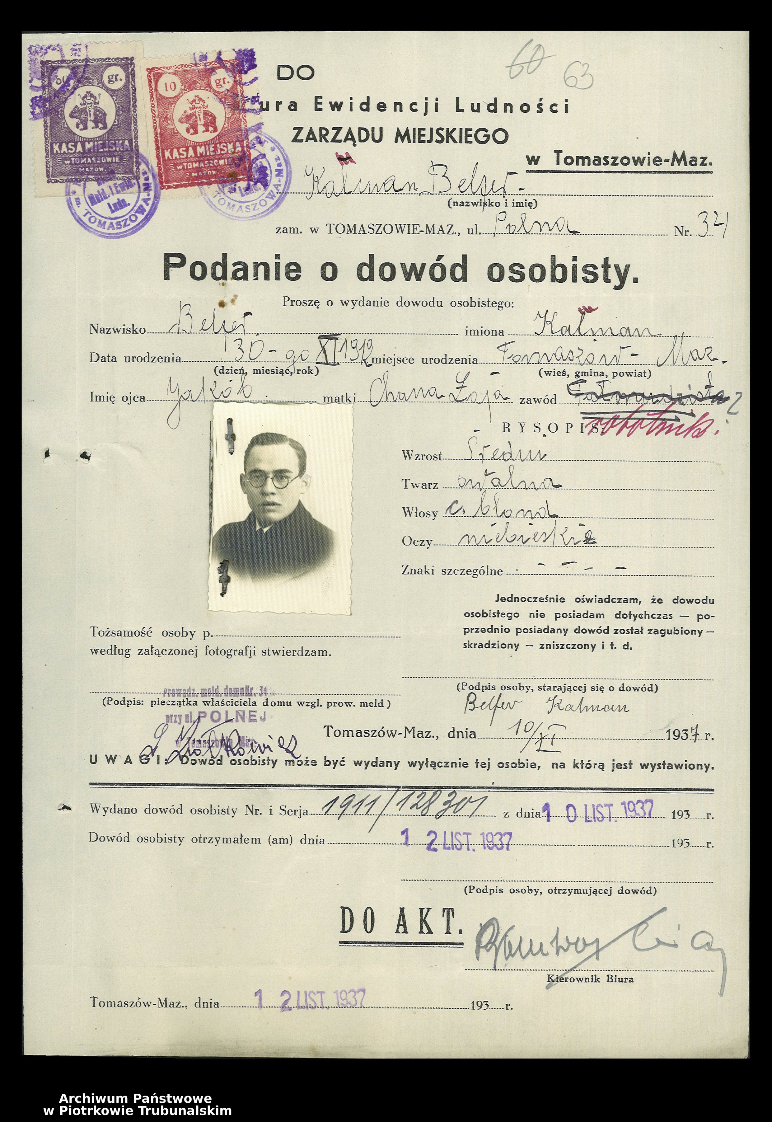 | Belfer | Kalman | 1912 | Tomaszow Mazowiecki, Polonia | Application |