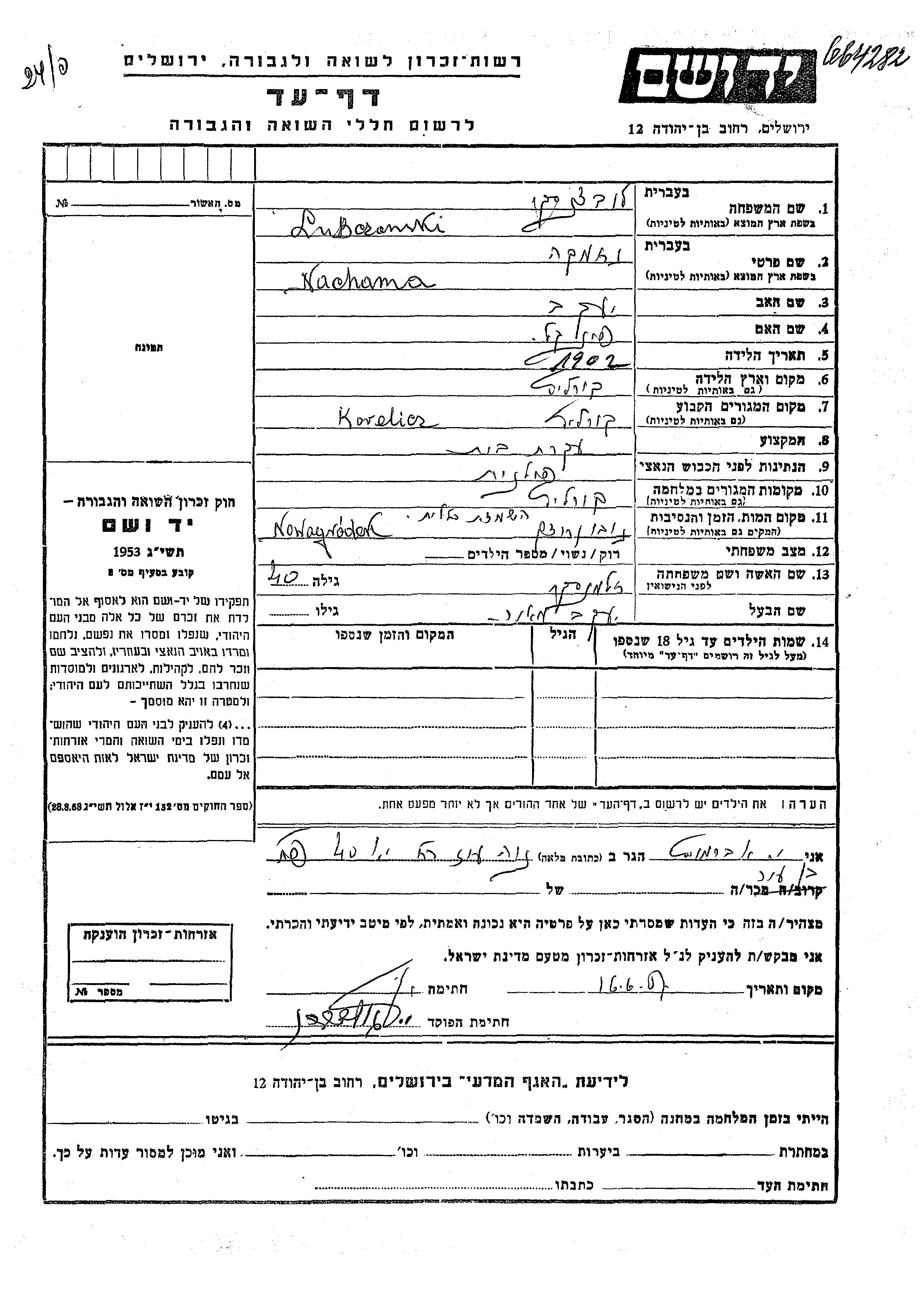 Yad Vashem - Colección conmemorativa de Hojas de Testimonio