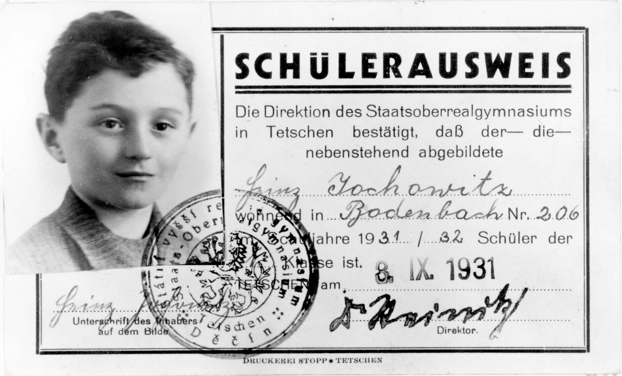 Hans Yochowitz nació en 1920. Era Alumno/a. Antes de la segunda guerra mundial vivía en Bodenbach, Checoslovaquia. Hans fue asesinado durante la Shoá. Lugar de la muerte: Auschwitz, Polonia en 28/09/1944.