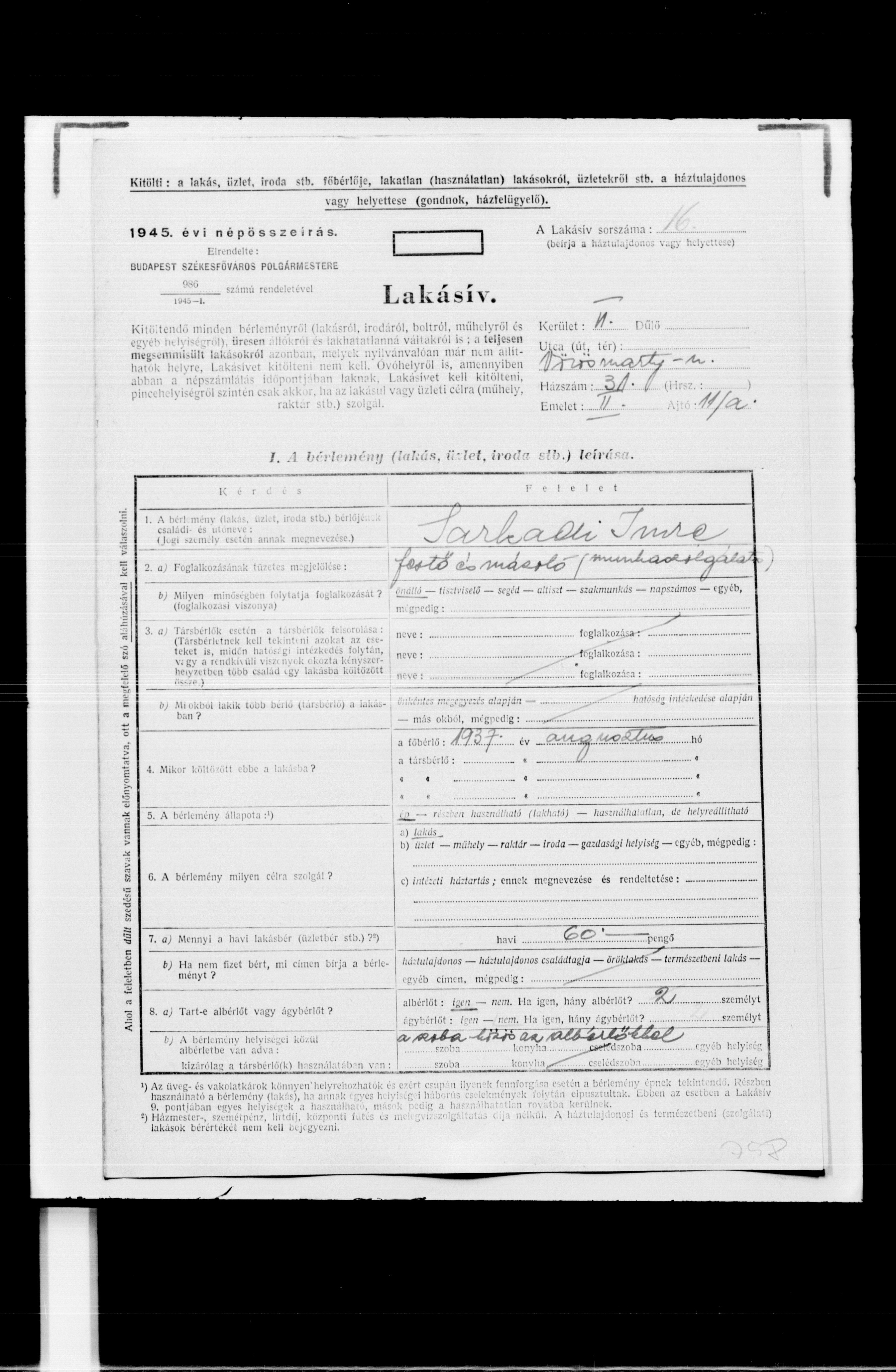 Imre Sarkadi nació en lugar desconocido en 1906. Era Pintor/a. Antes de la segunda guerra mundial vivía en Budapest, Hungría. Imre fue asesinado durante la Shoá. Lugar de la muerte: Donnerskirchen Purbach, Austria en 23/01/1945.