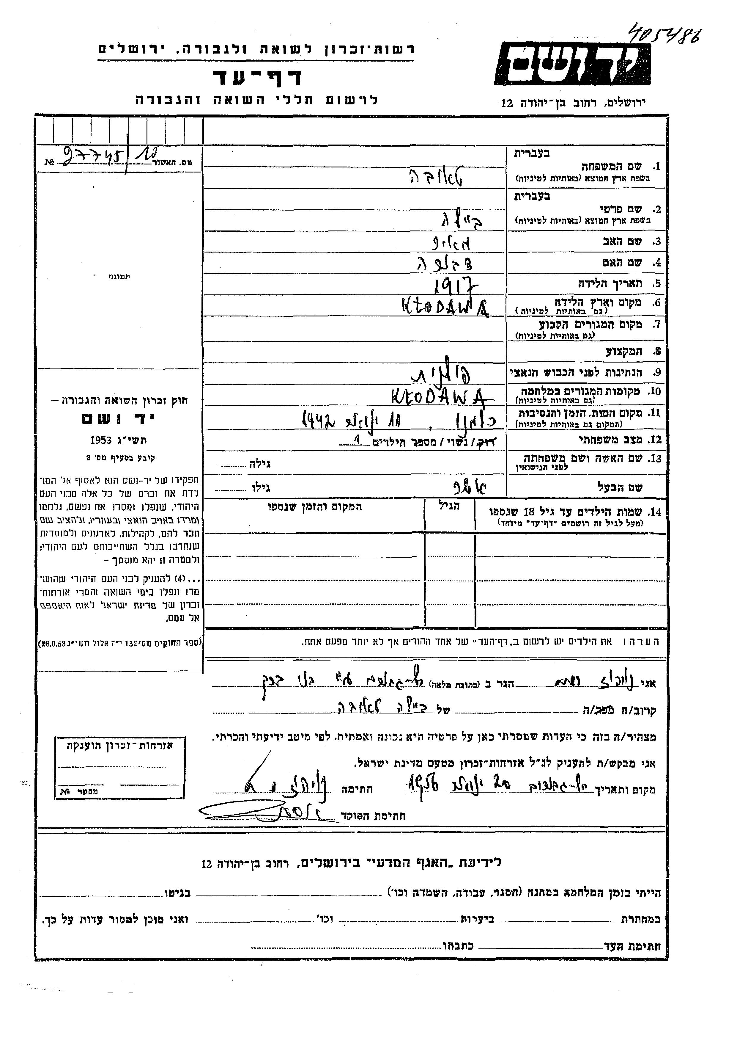 Yad Vashem - Colección conmemorativa de Hojas de Testimonio