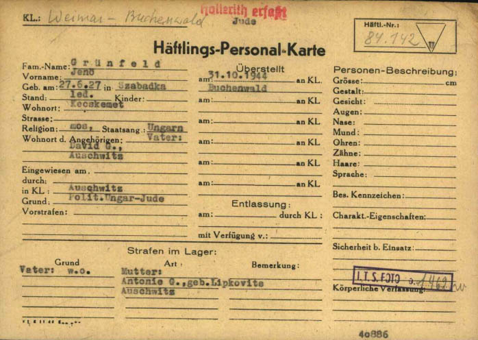 | Grünfeld | Jenö | 1927 | Kecskemet, Hungría | ITS card file |