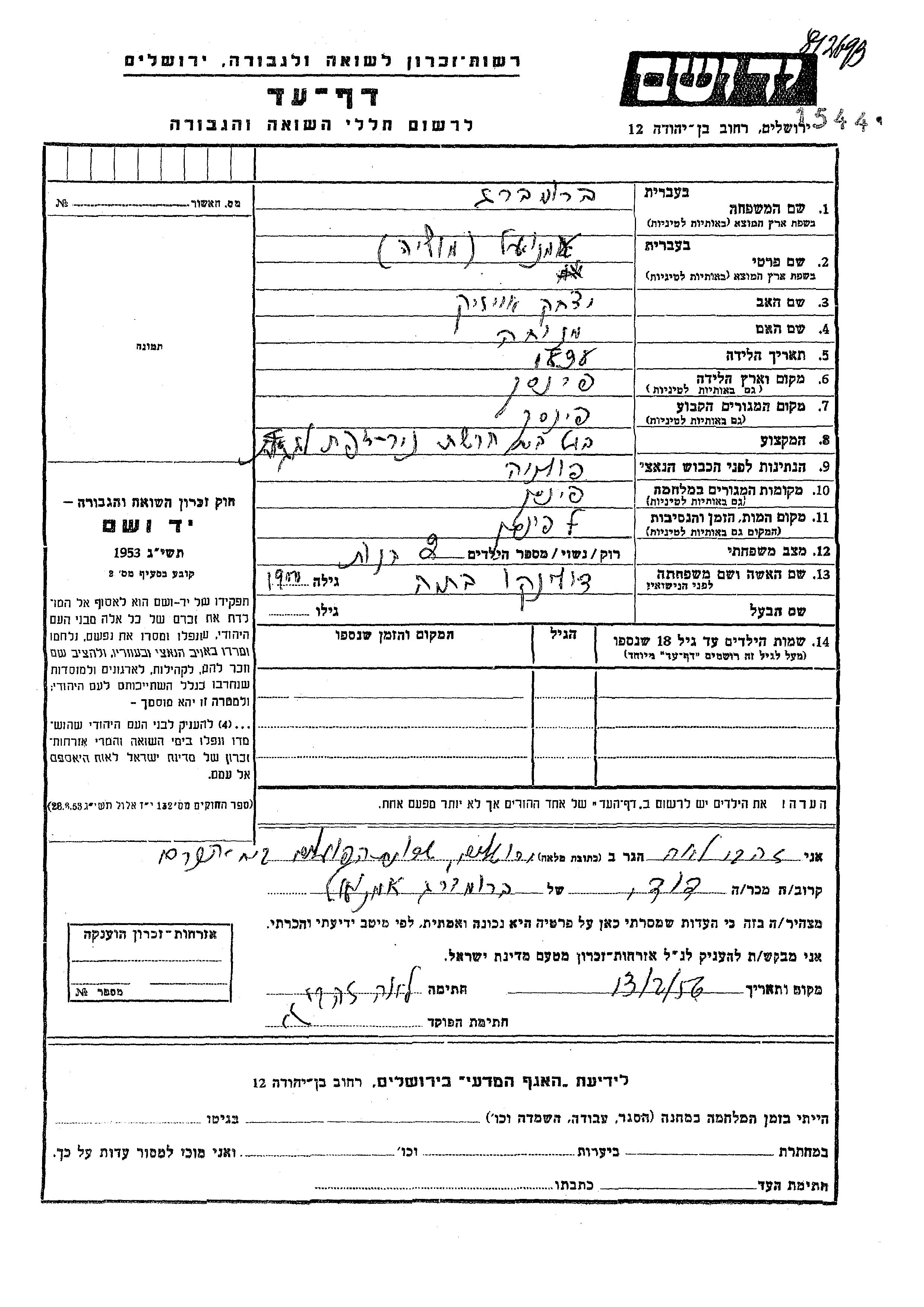 Yad Vashem - Colección conmemorativa de Hojas de Testimonio