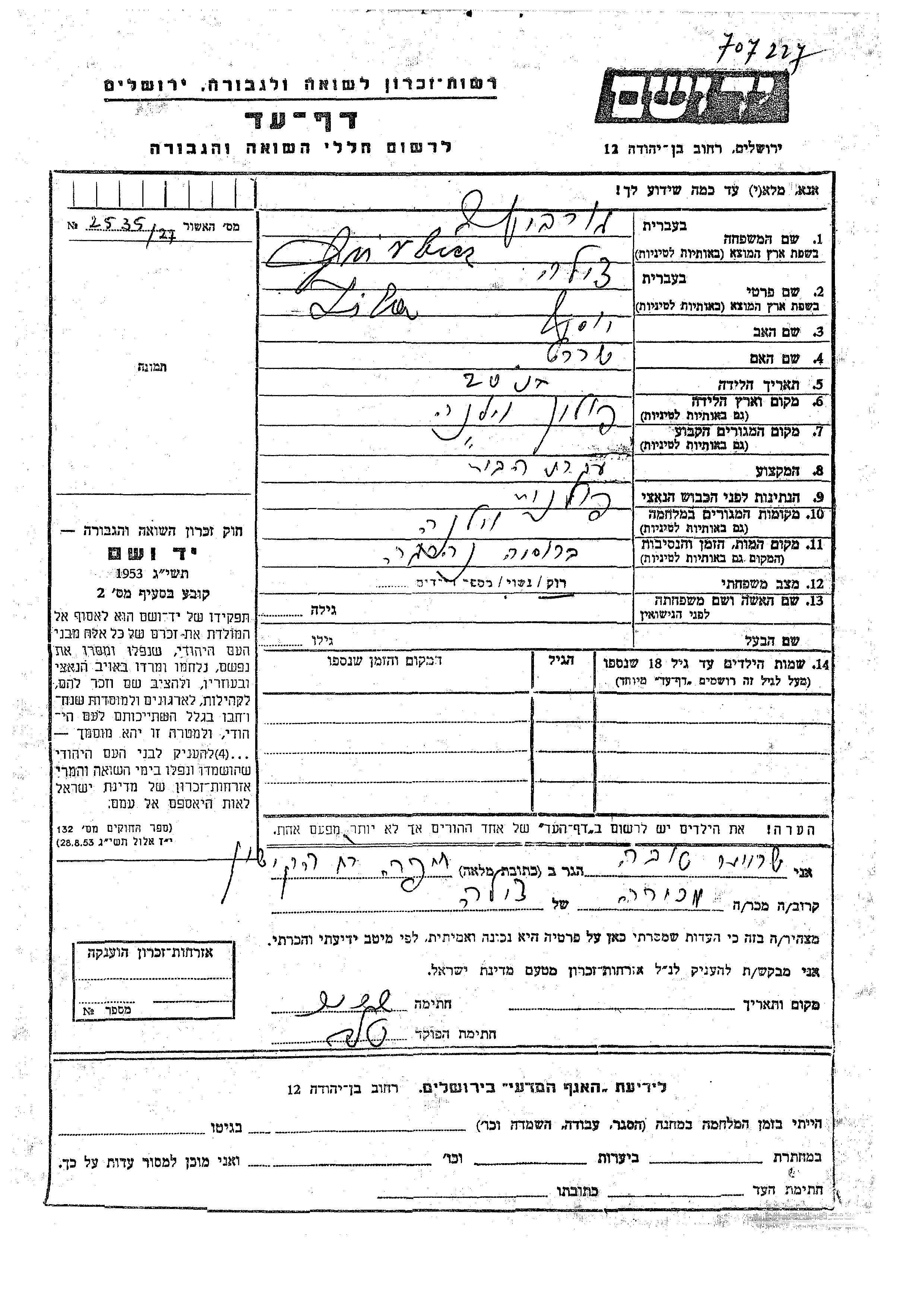 Yad Vashem - Colección conmemorativa de Hojas de Testimonio