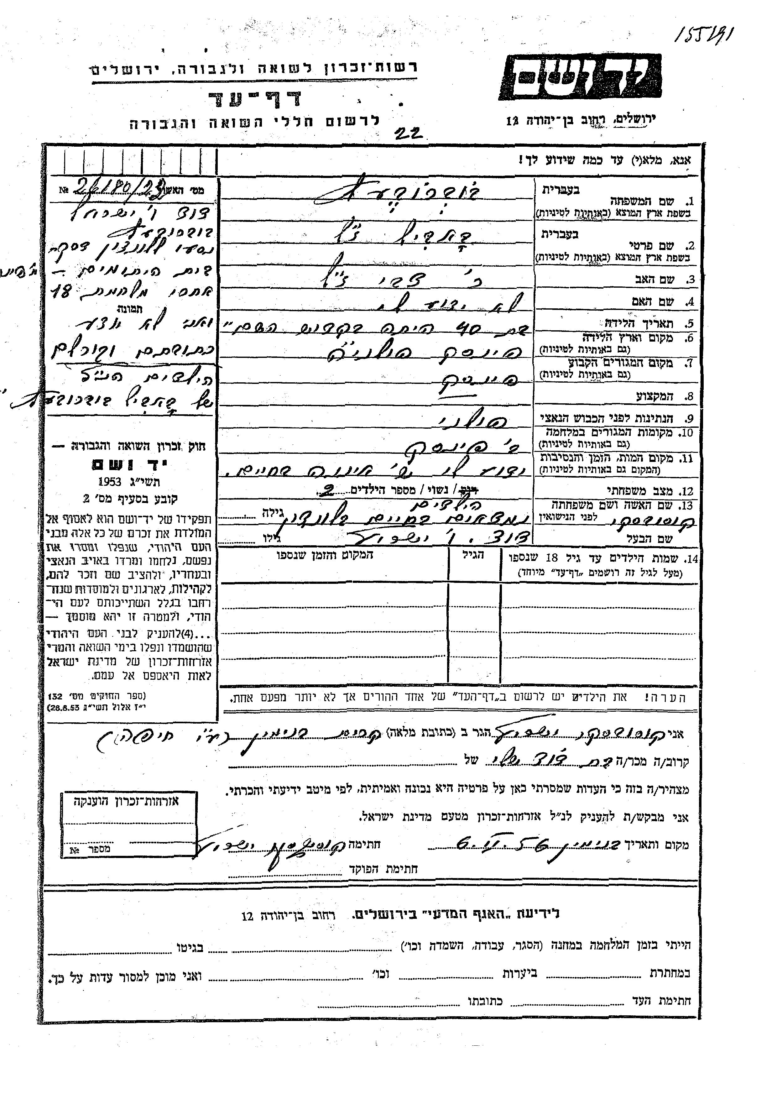Yad Vashem - Colección conmemorativa de Hojas de Testimonio