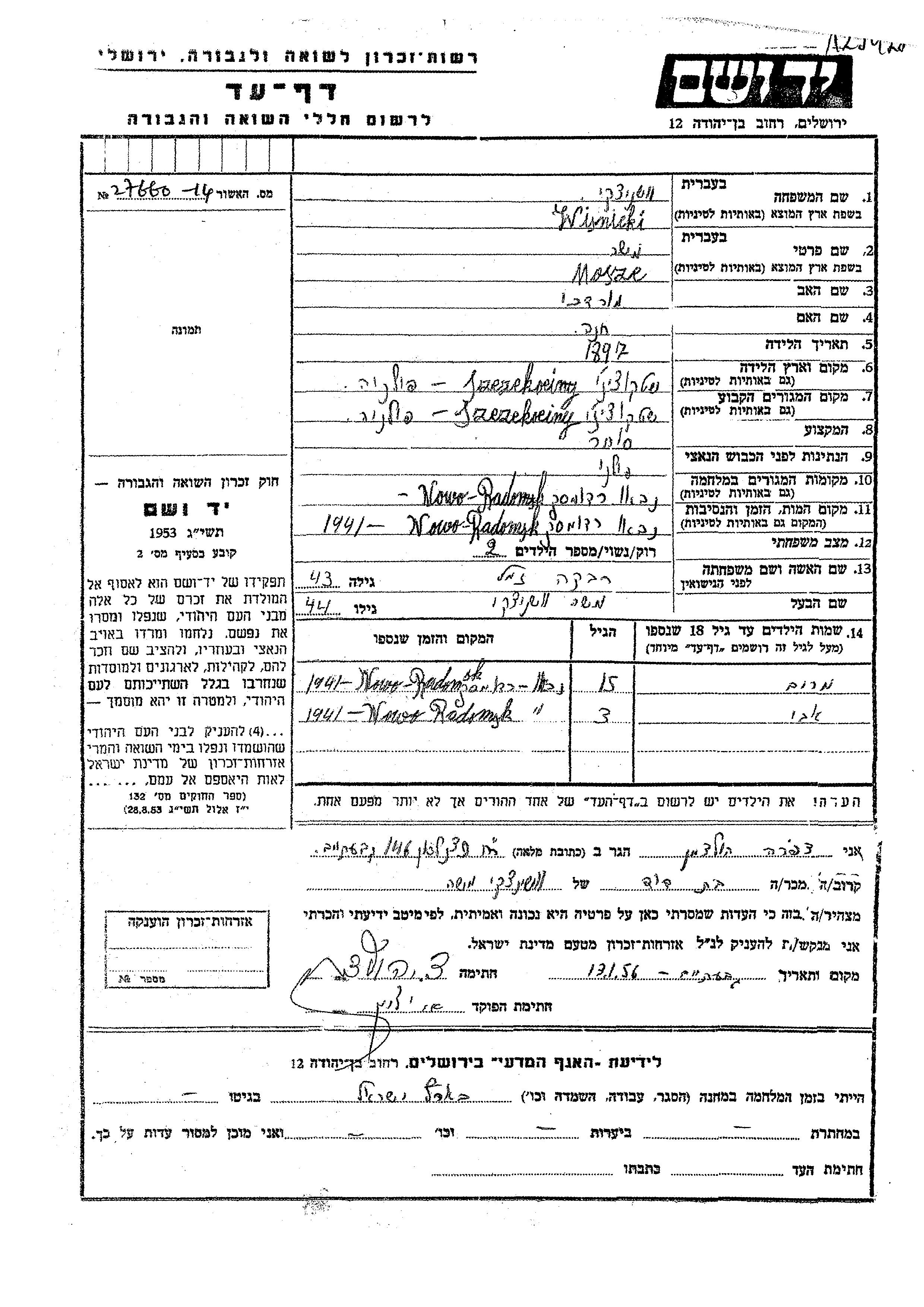 Mosze fue asesinado durante la Shoá. Lugar de la muerte: Nowo Radomsko, Polonia en 1941.