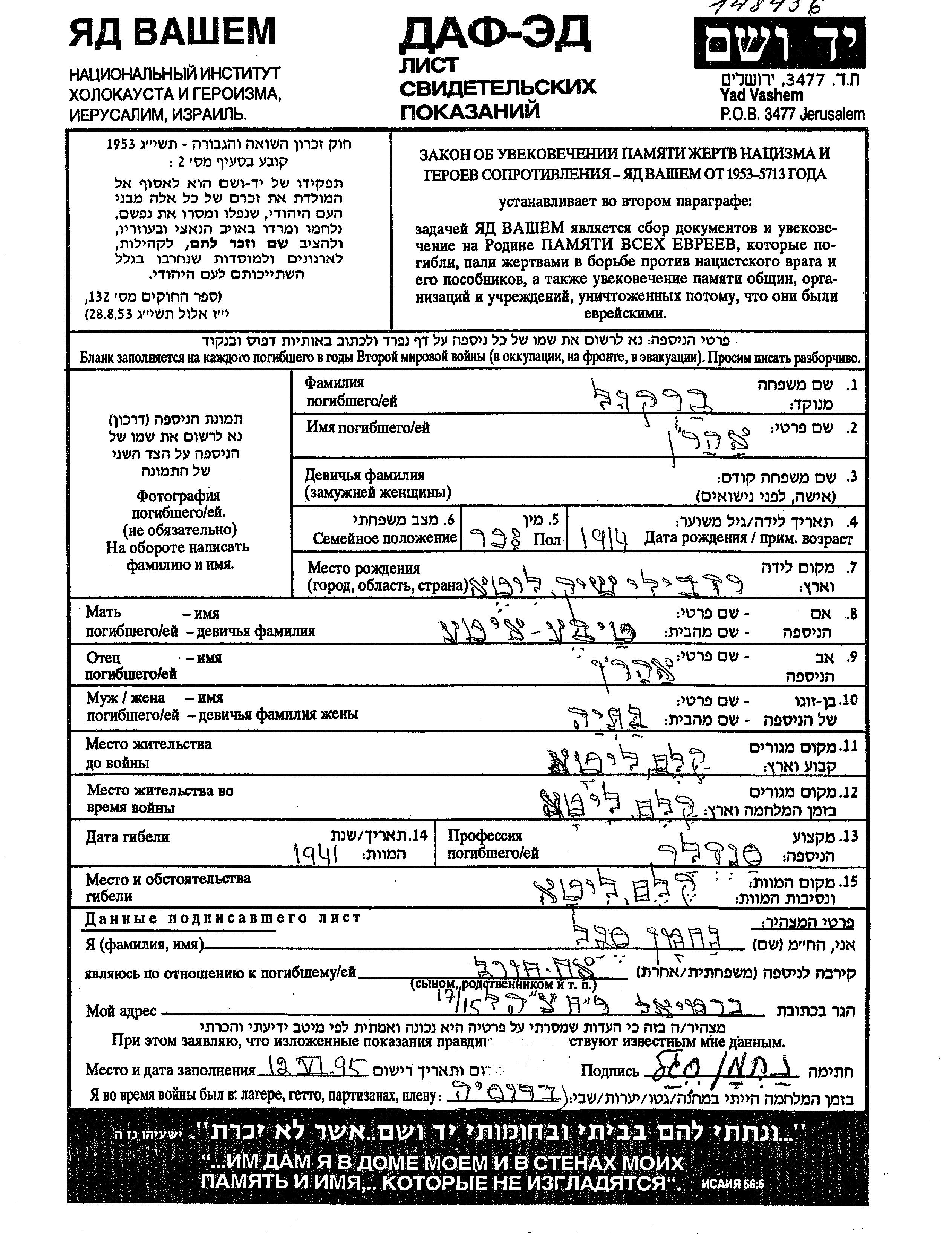 Barkul Aharon 1914 Kelem, Lituania Hoja de Testimonio