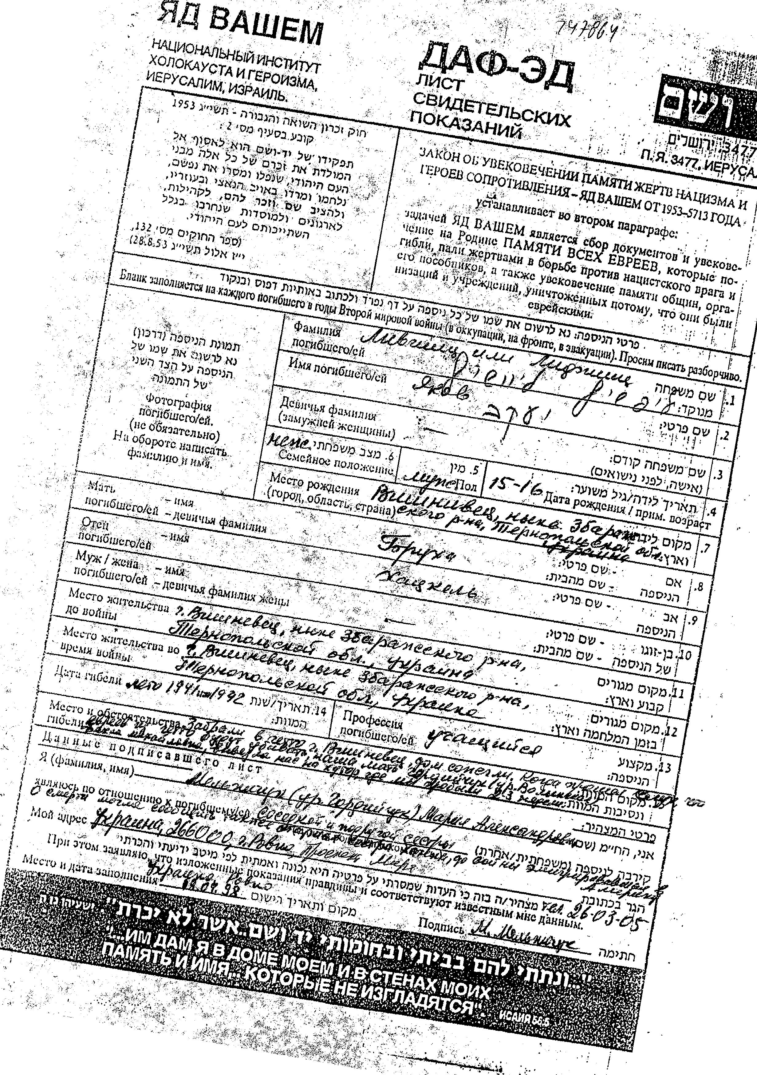 Livshitz Yakov 1926 Wisniowiec, Polonia Hoja de Testimonio