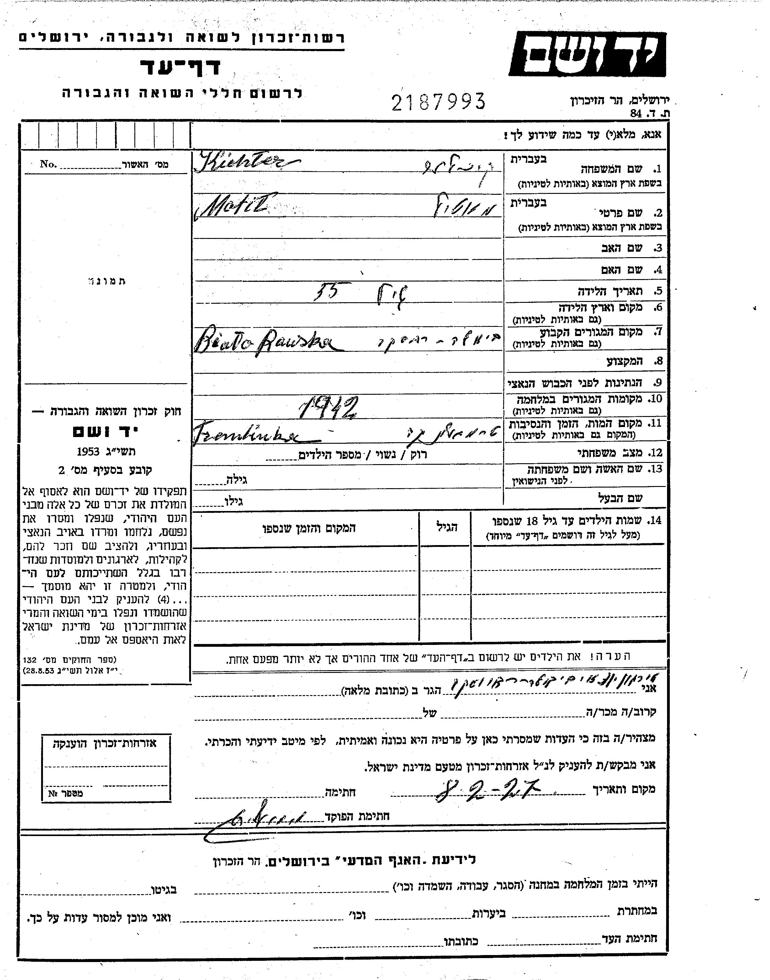 Yad Vashem - Colección conmemorativa de Hojas de Testimonio