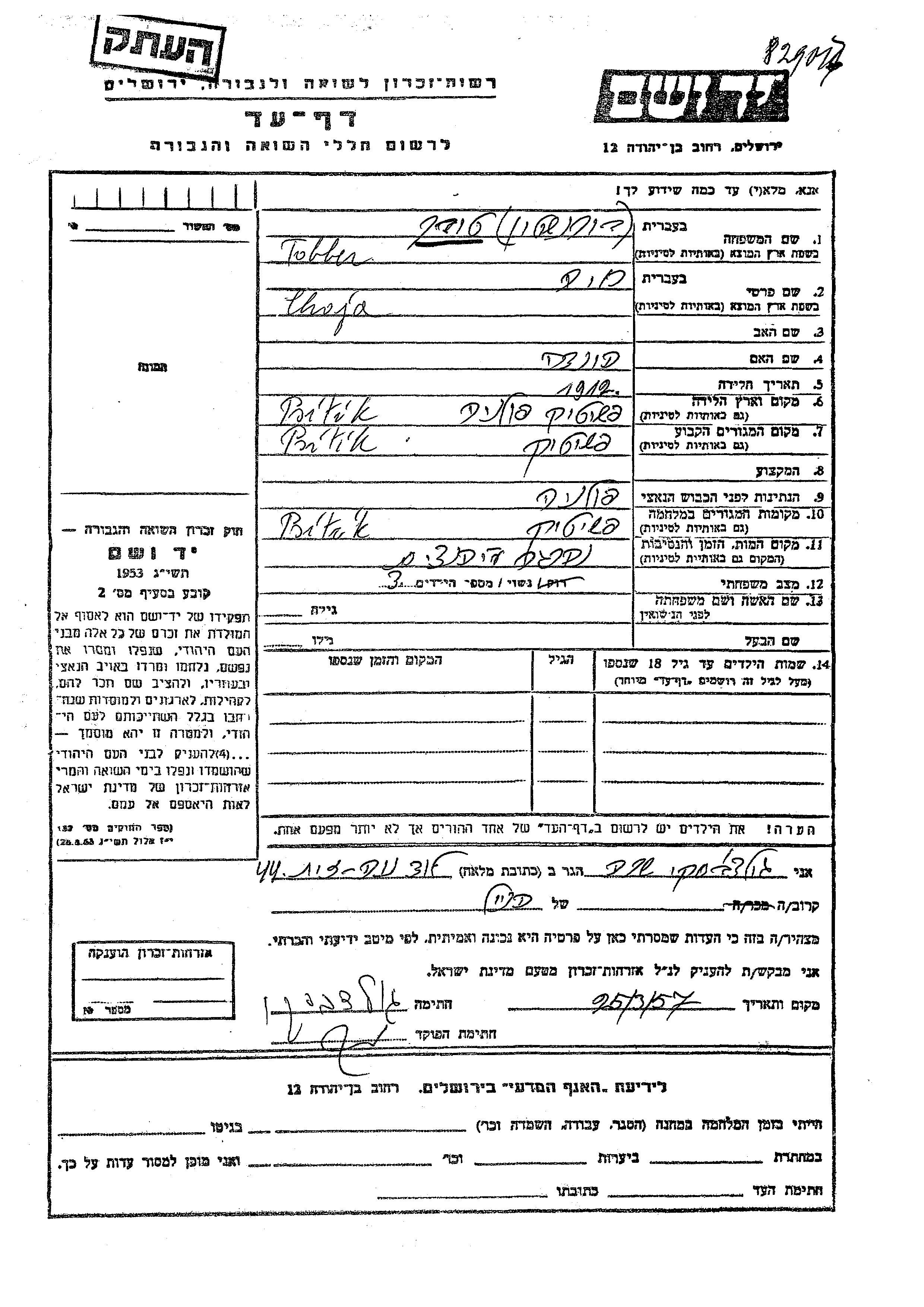 Durante la Guerra/Shoá: