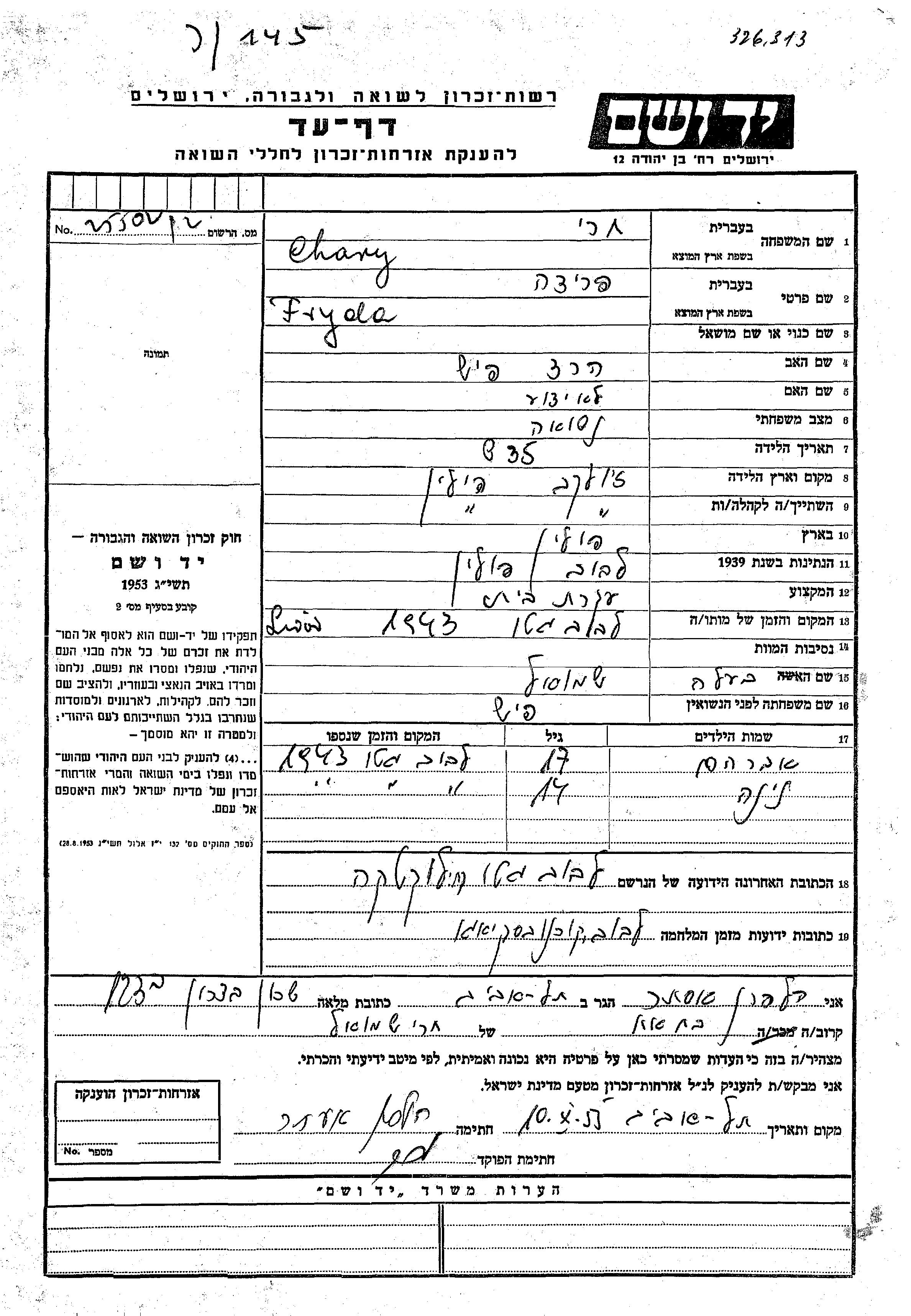 Chary Fryda Lwow, Polonia Hoja de Testimonio