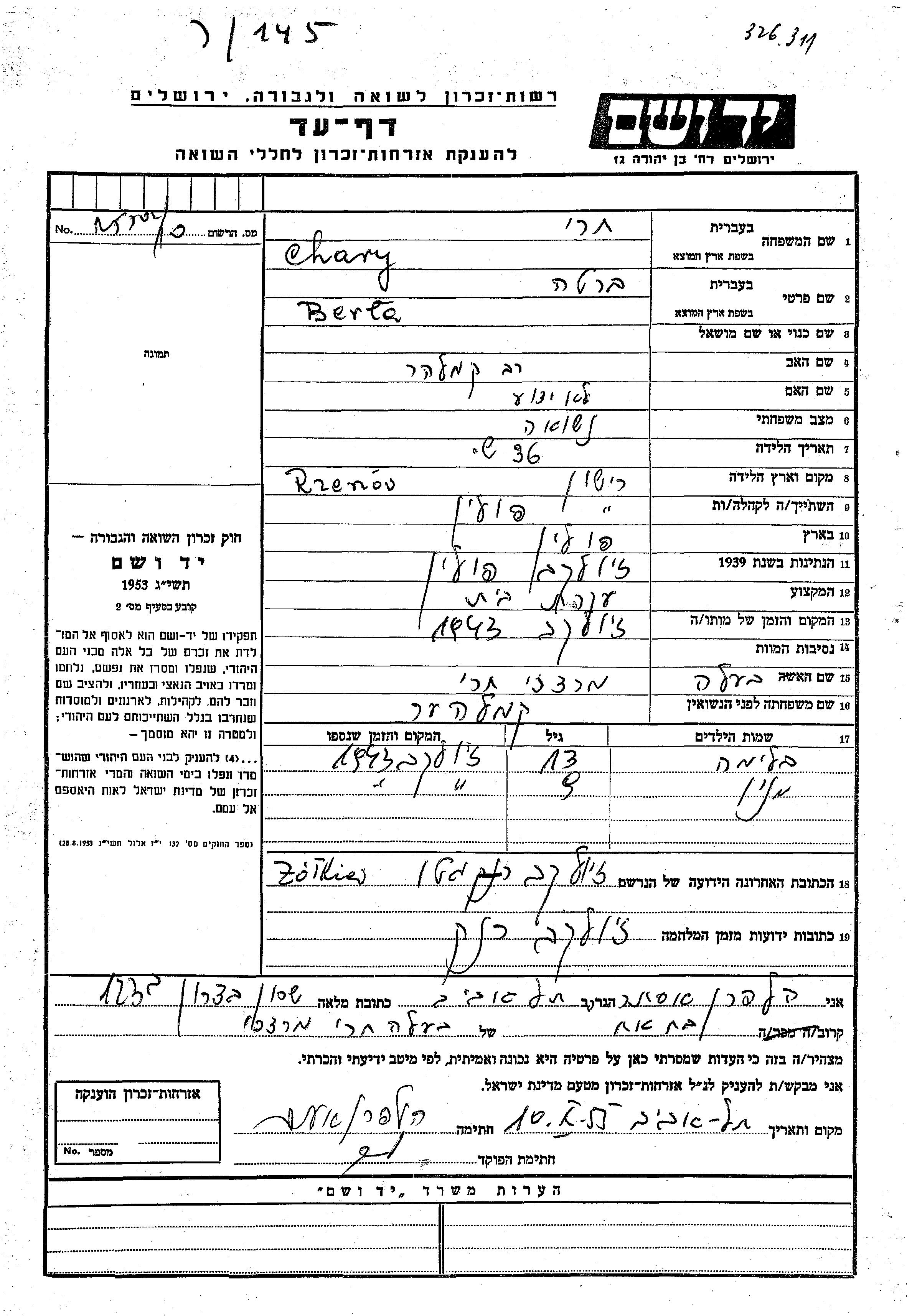 Chary Berta Zolkiew, Polonia Hoja de Testimonio
