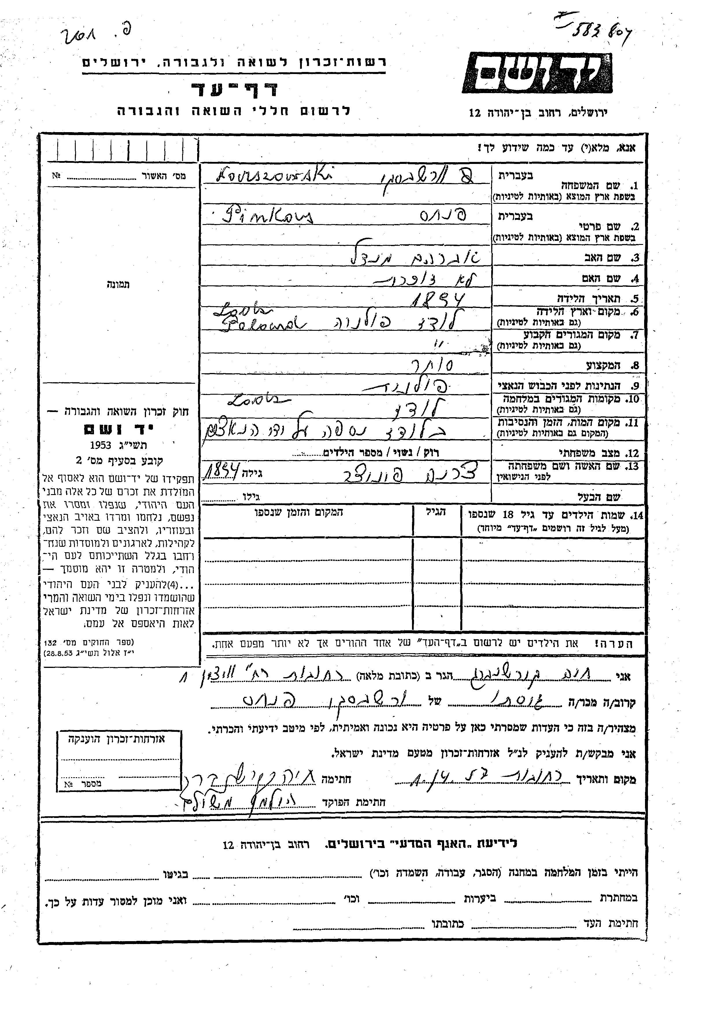 Worsowski Varshavski Pinkhas 1894 Lodz, Polonia Hoja de Testimonio