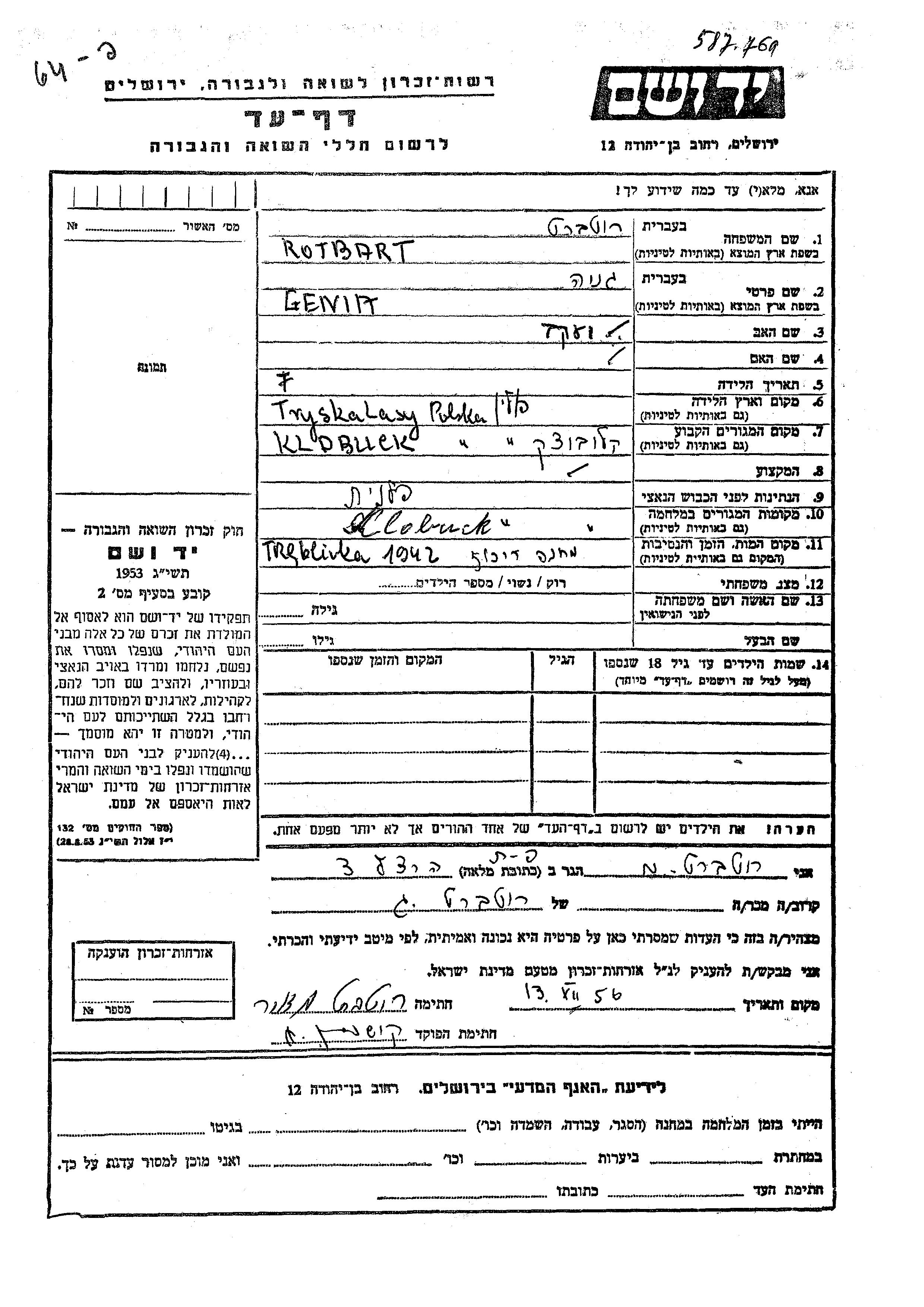 Rotbart Genia Klobuck, Polonia Hoja de Testimonio