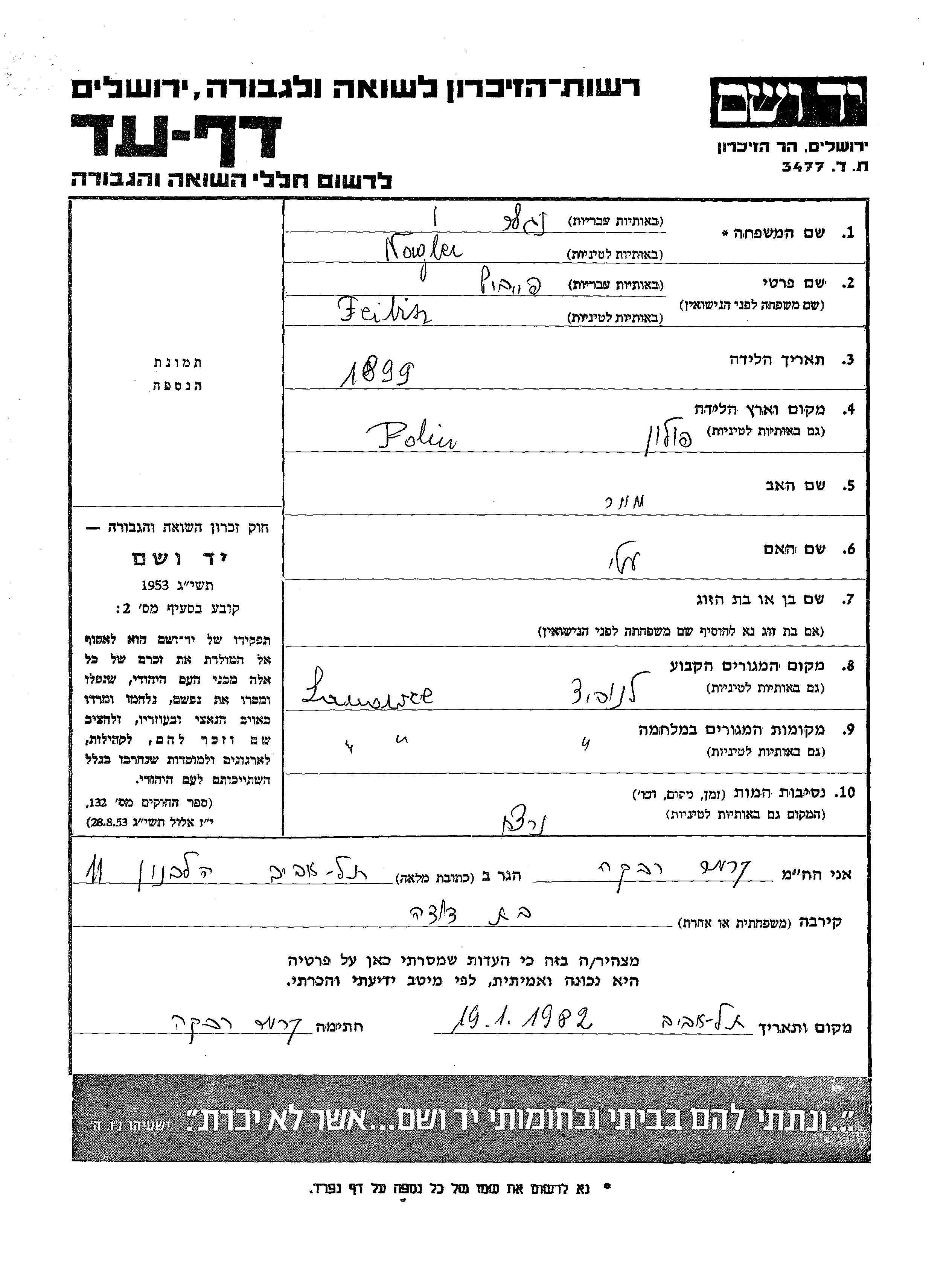 Nagler Feibisz 1899 Lanowce, Polonia Hoja de Testimonio