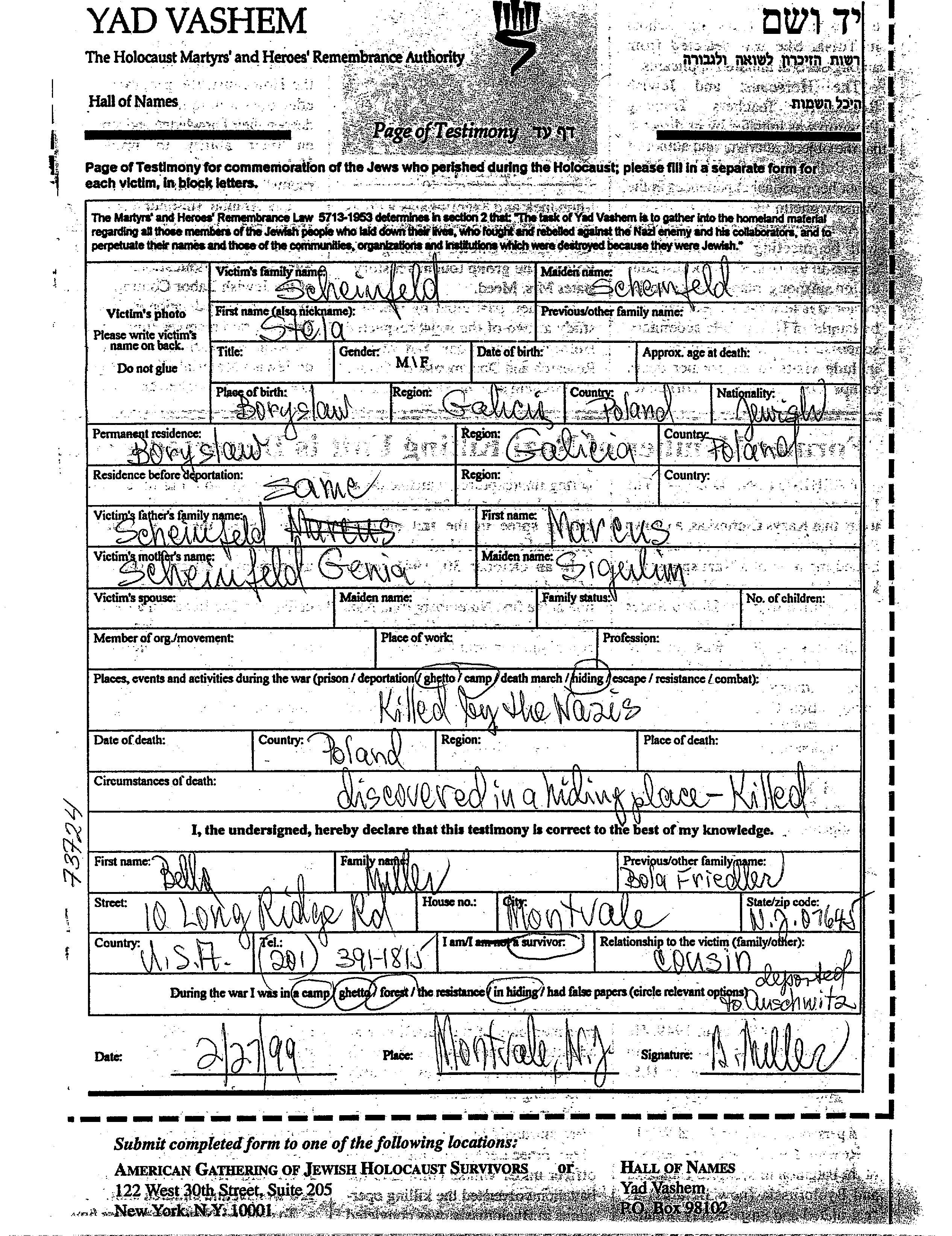 Scheinfeld Stela Boryslaw, Polonia Hoja de Testimonio