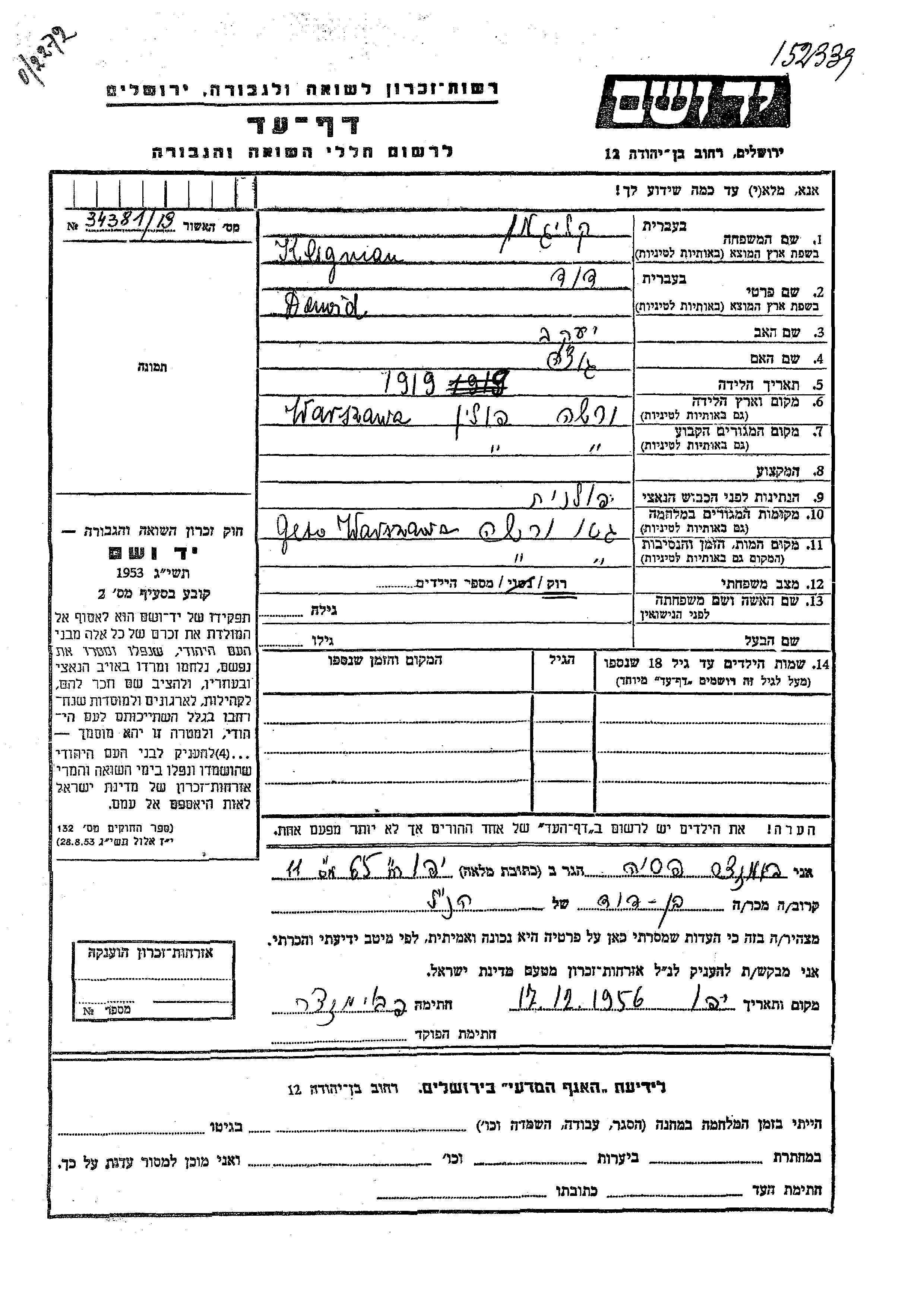 Kligman Dawid 1919 Warsaw, Polonia Hoja de Testimonio