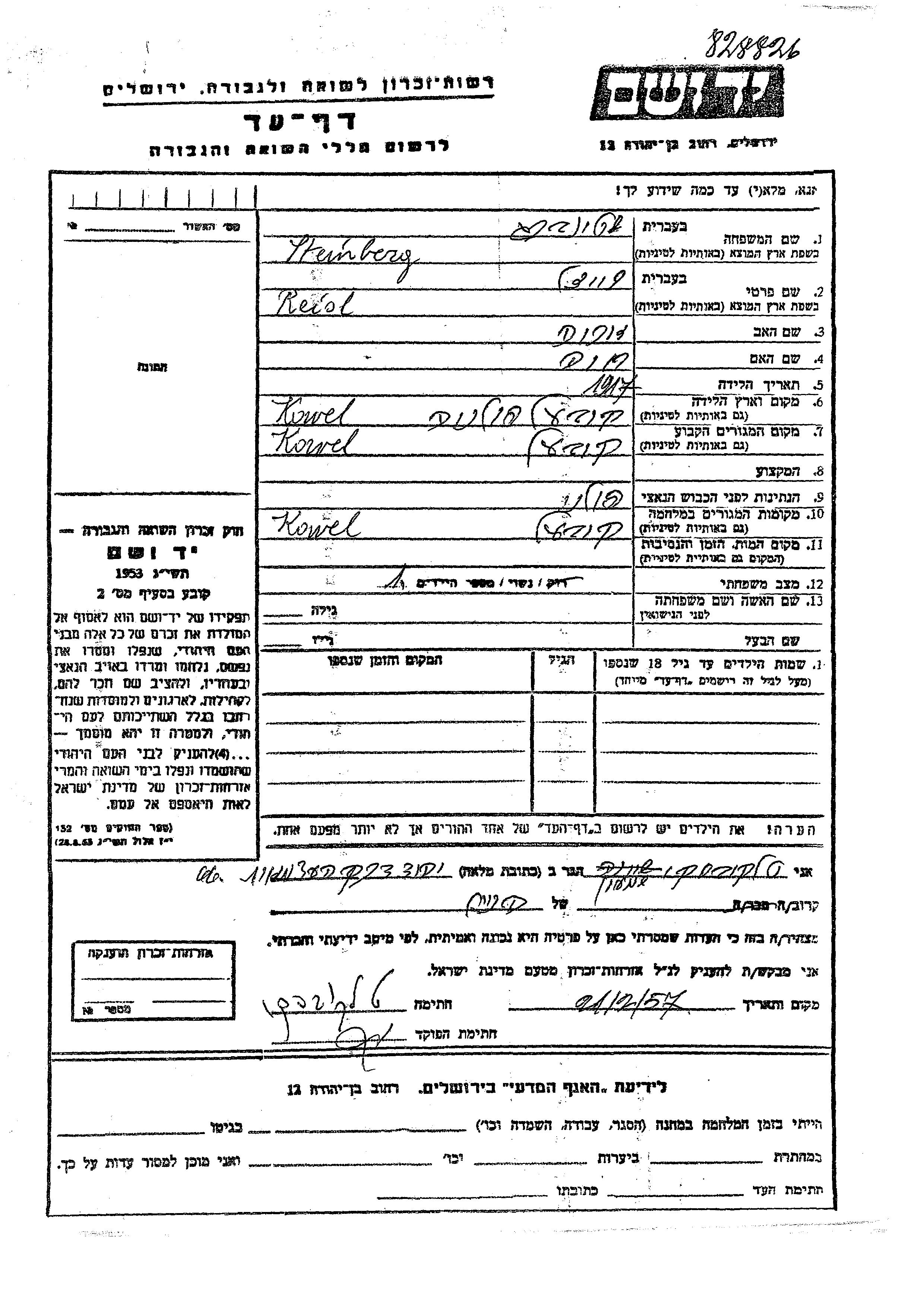 Yad Vashem - Colección conmemorativa de Hojas de Testimonio