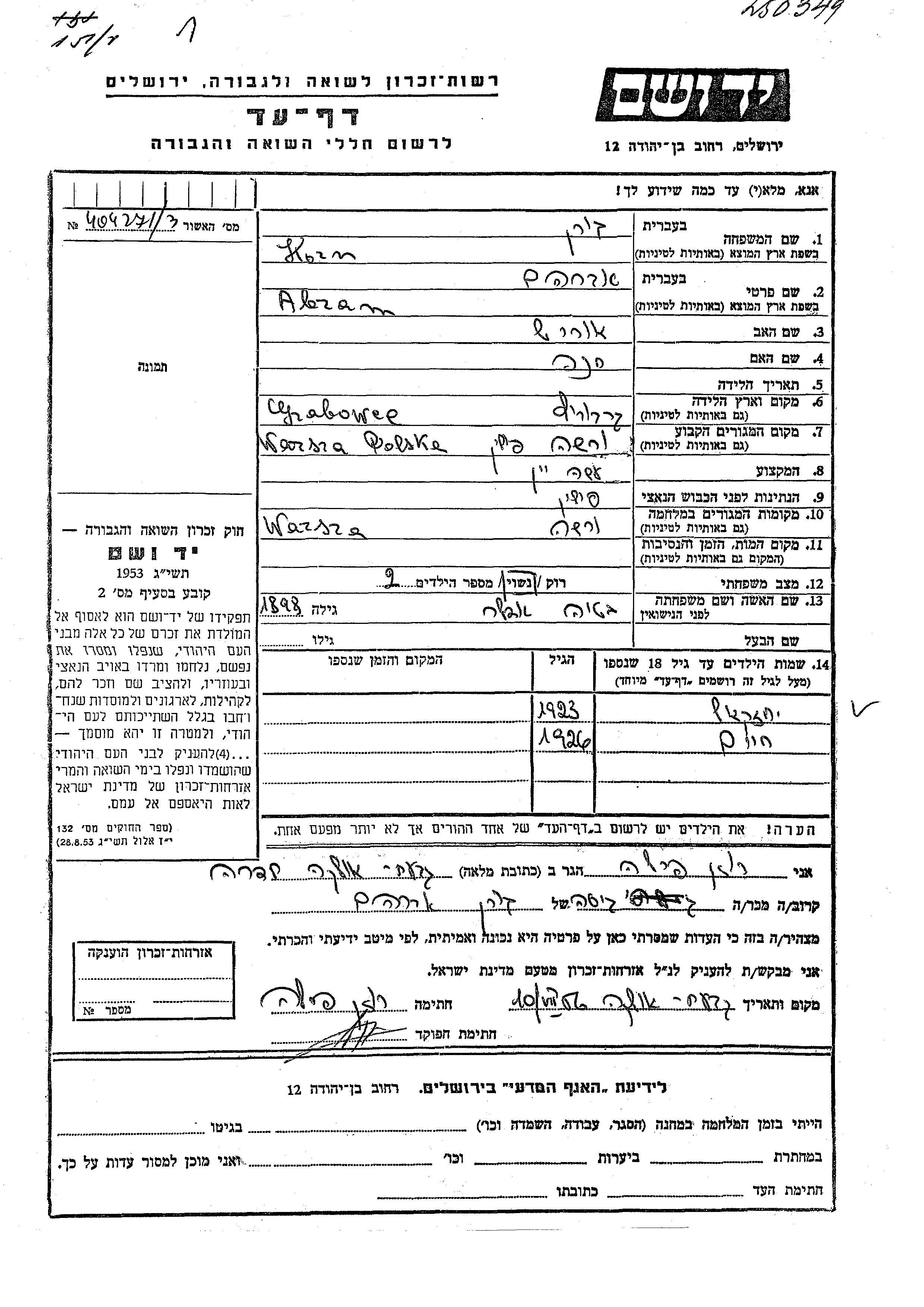 Yad Vashem - Colección conmemorativa de Hojas de Testimonio