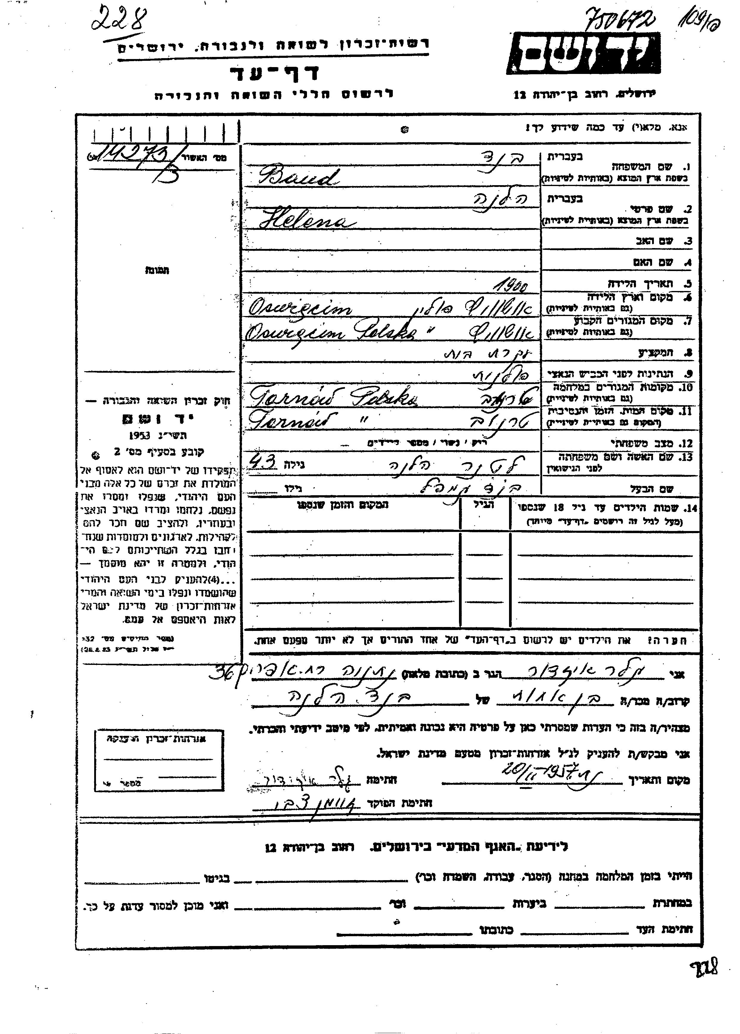 Yad Vashem - Colección conmemorativa de Hojas de Testimonio