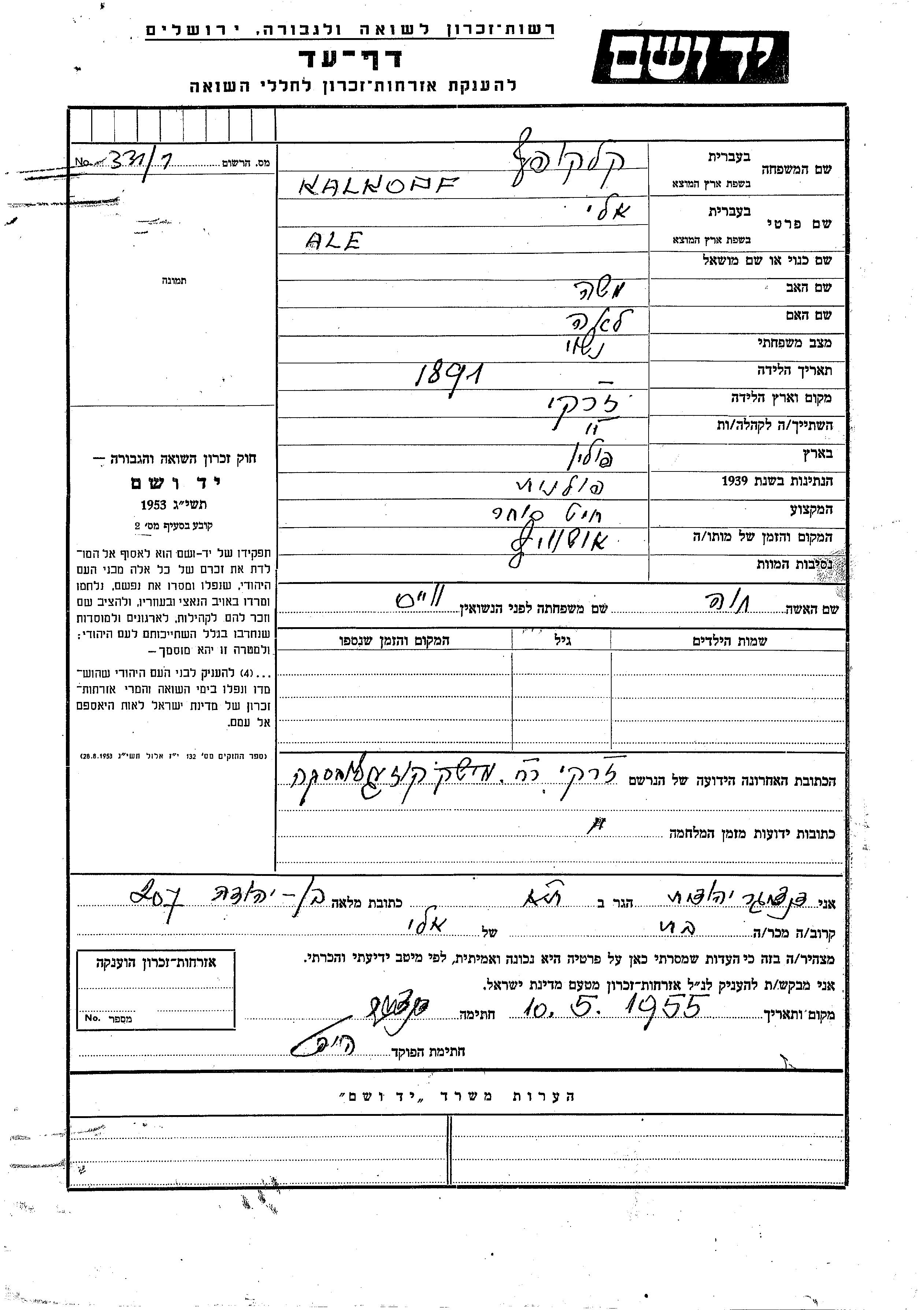 Yad Vashem - Colección conmemorativa de Hojas de Testimonio