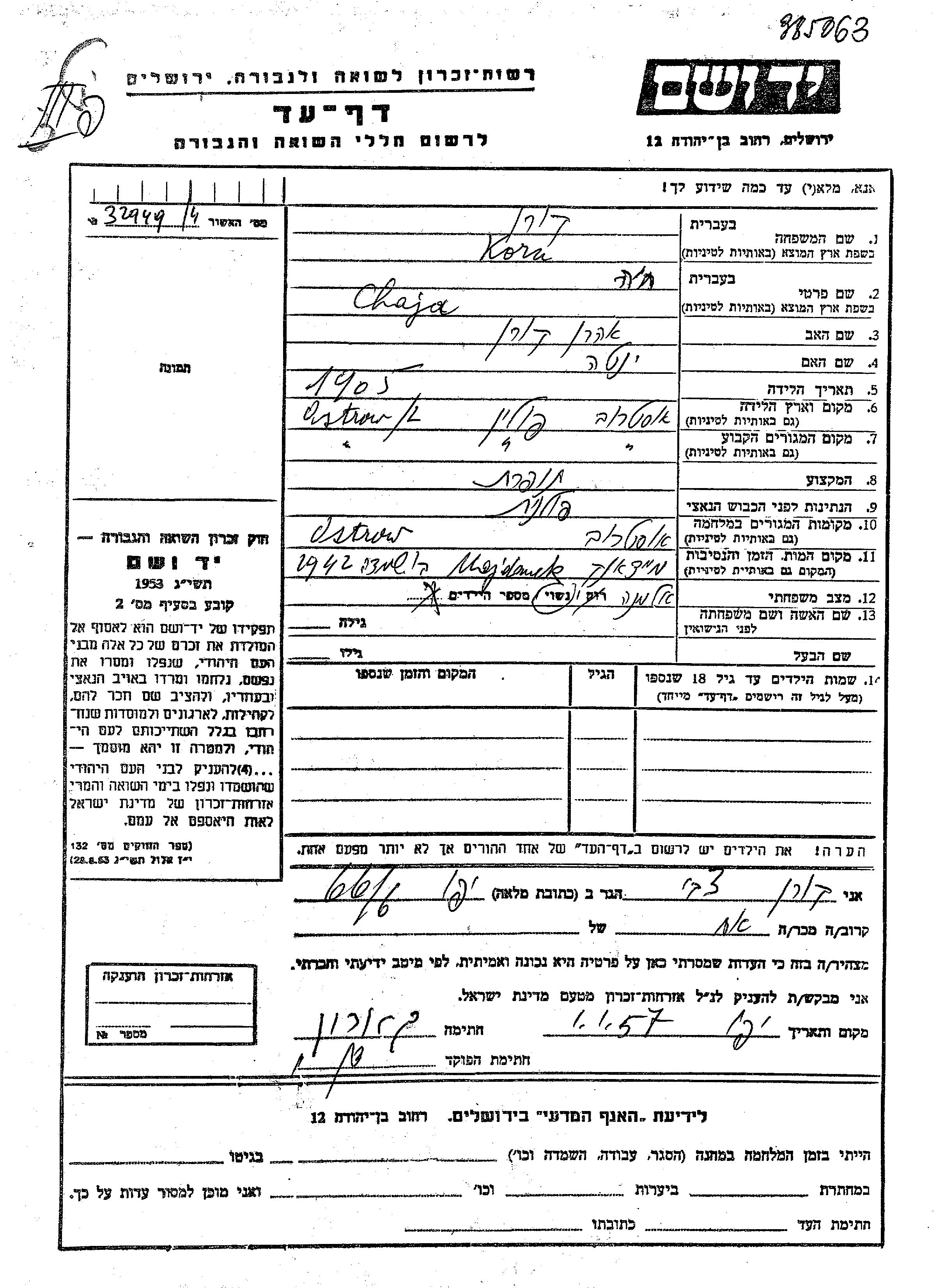 Chaja fue asesinada durante la Shoá. Lugar de la muerte: Majdanek, Polonia en 1942.
