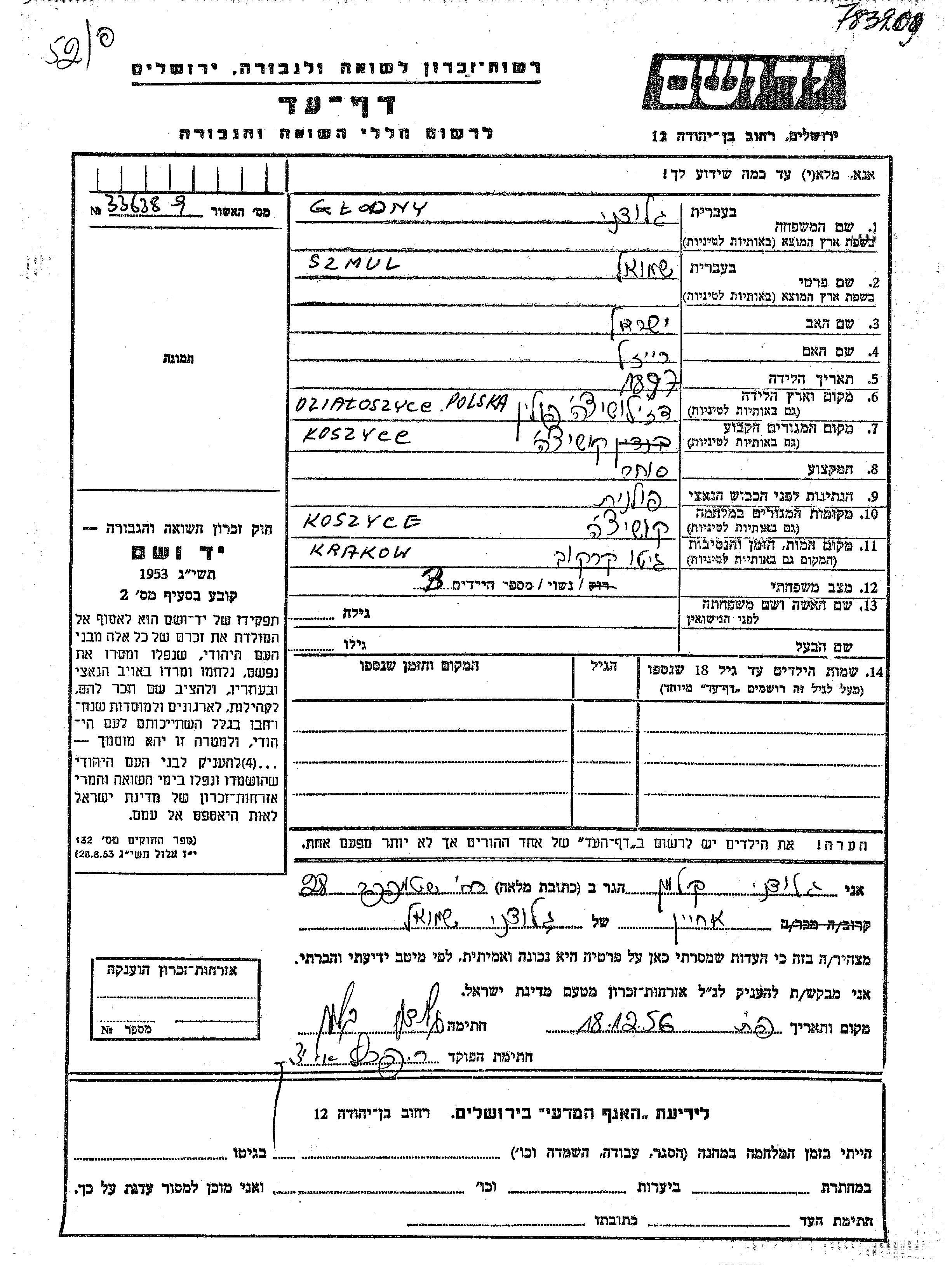 Szmul fue asesinado durante la Shoá. Lugar de la muerte: Krakow, Polonia.