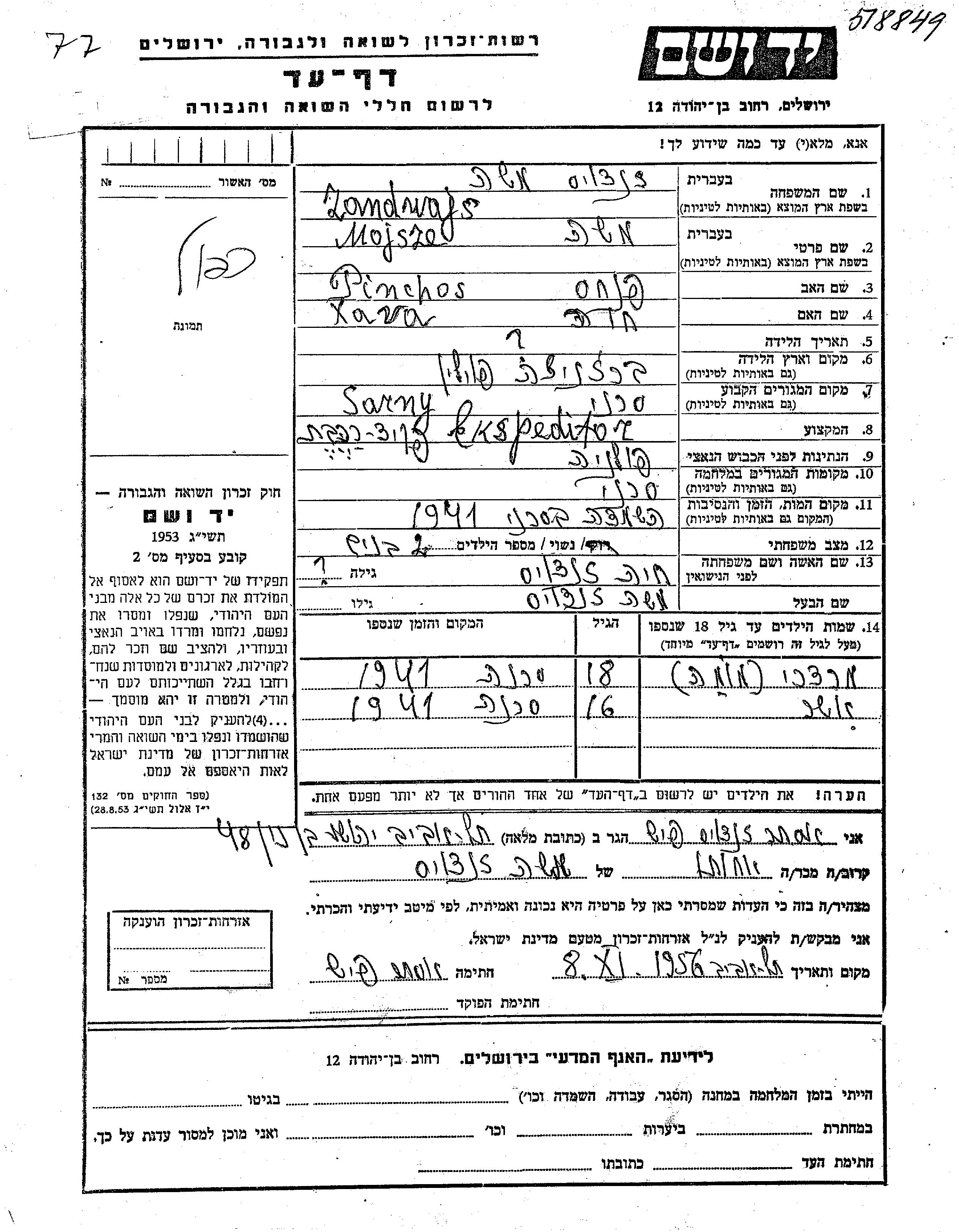 Zandwajs Mojsze Sarny, Polonia Hoja de Testimonio