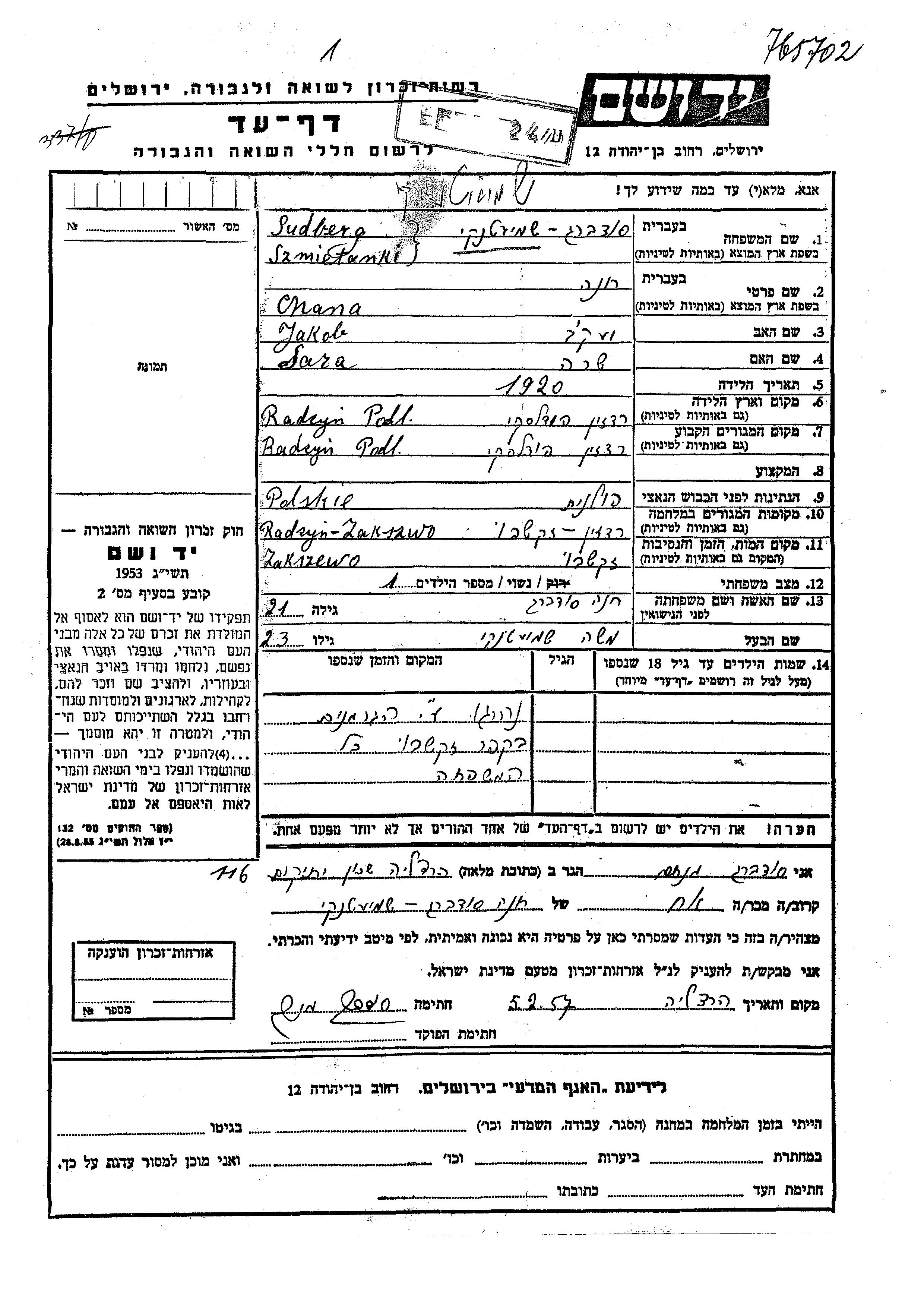 Yad Vashem - Colección conmemorativa de Hojas de Testimonio