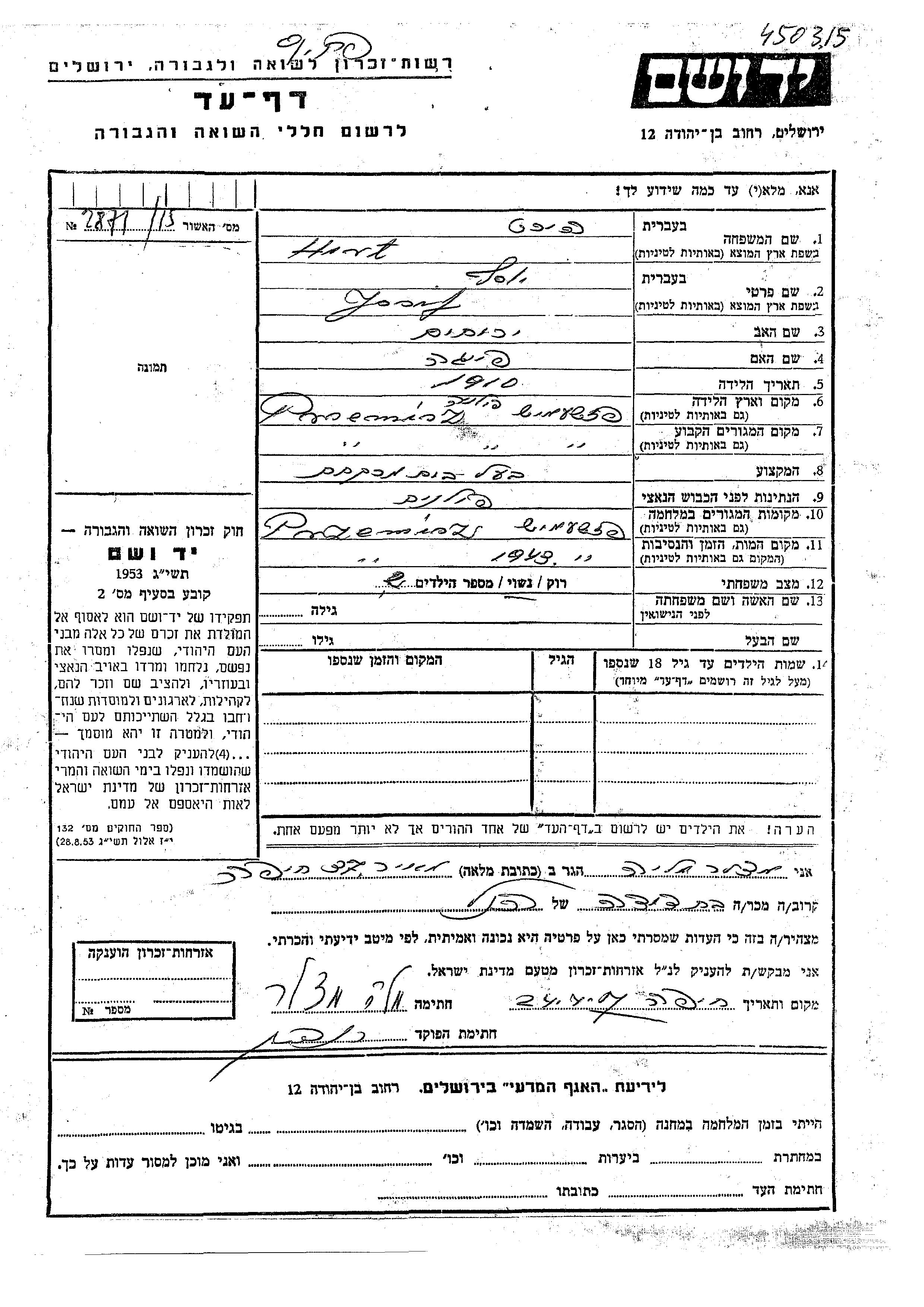 Yad Vashem - Colección conmemorativa de Hojas de Testimonio