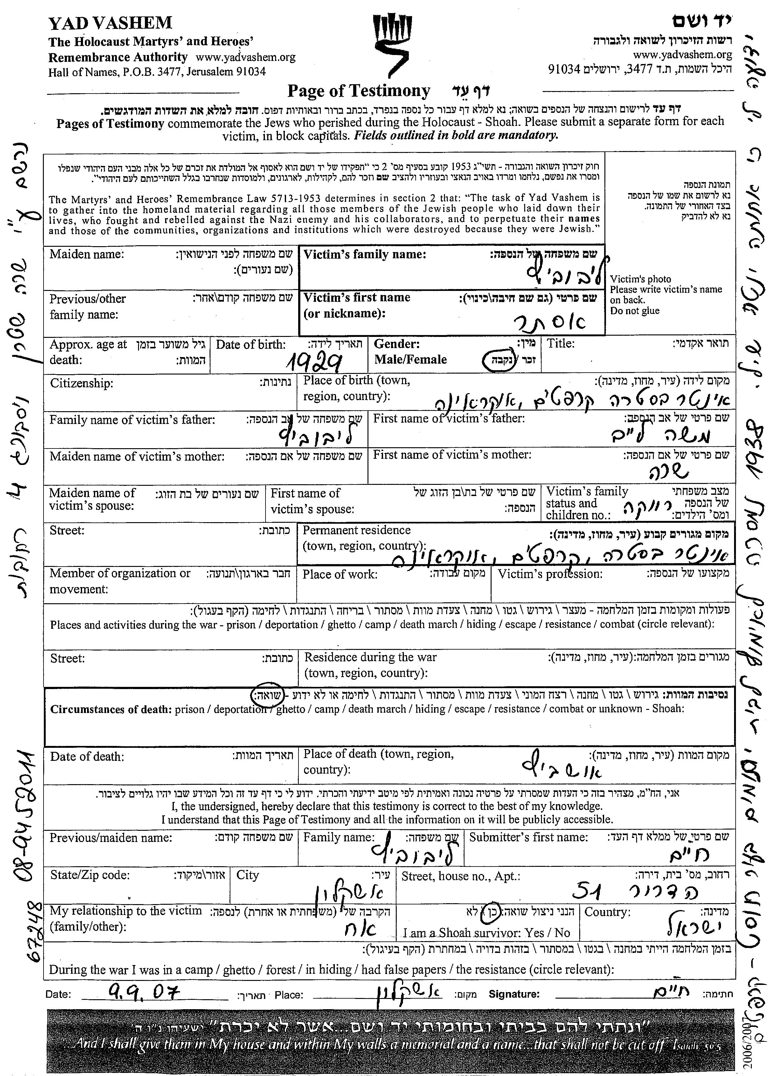Durante la Guerra/Shoá: